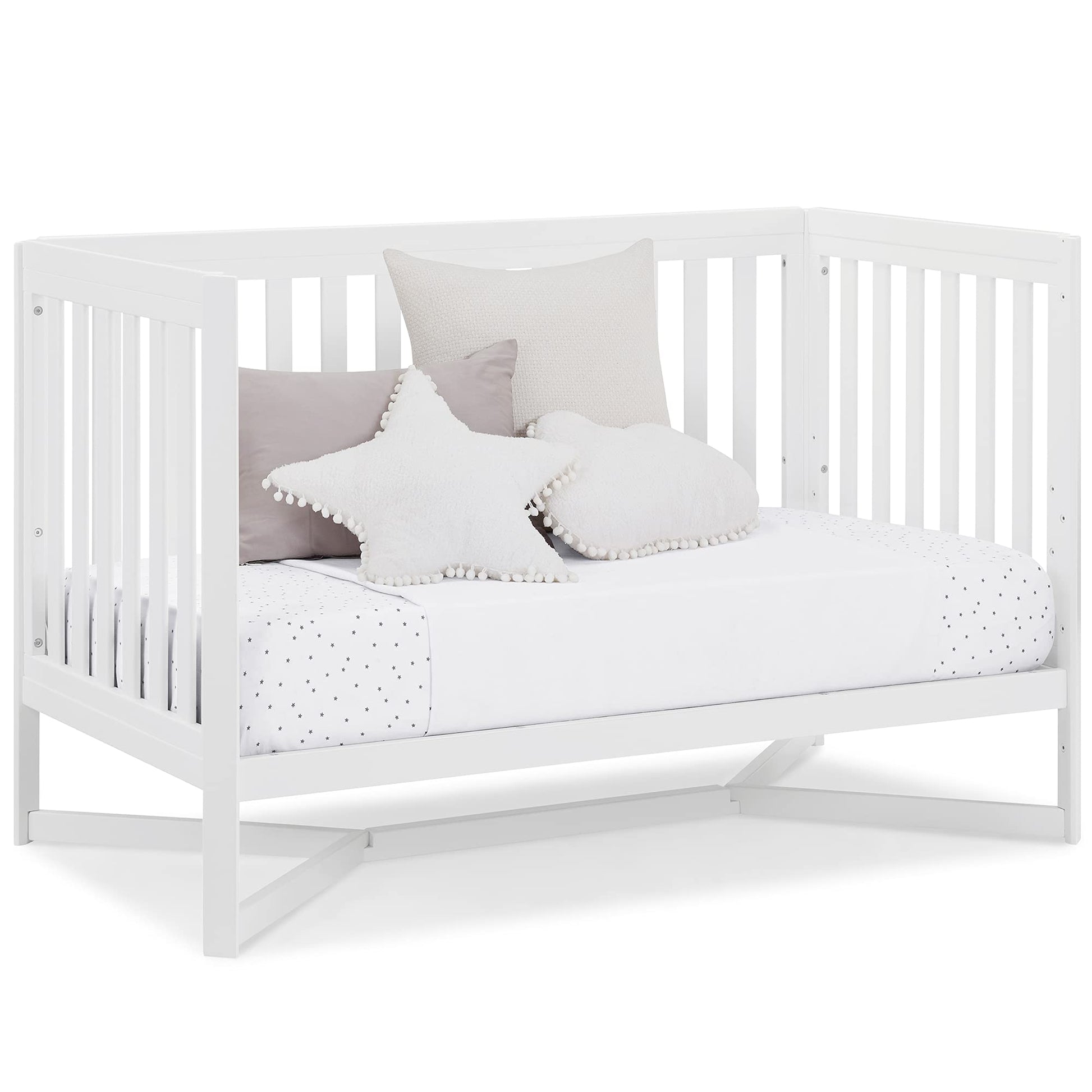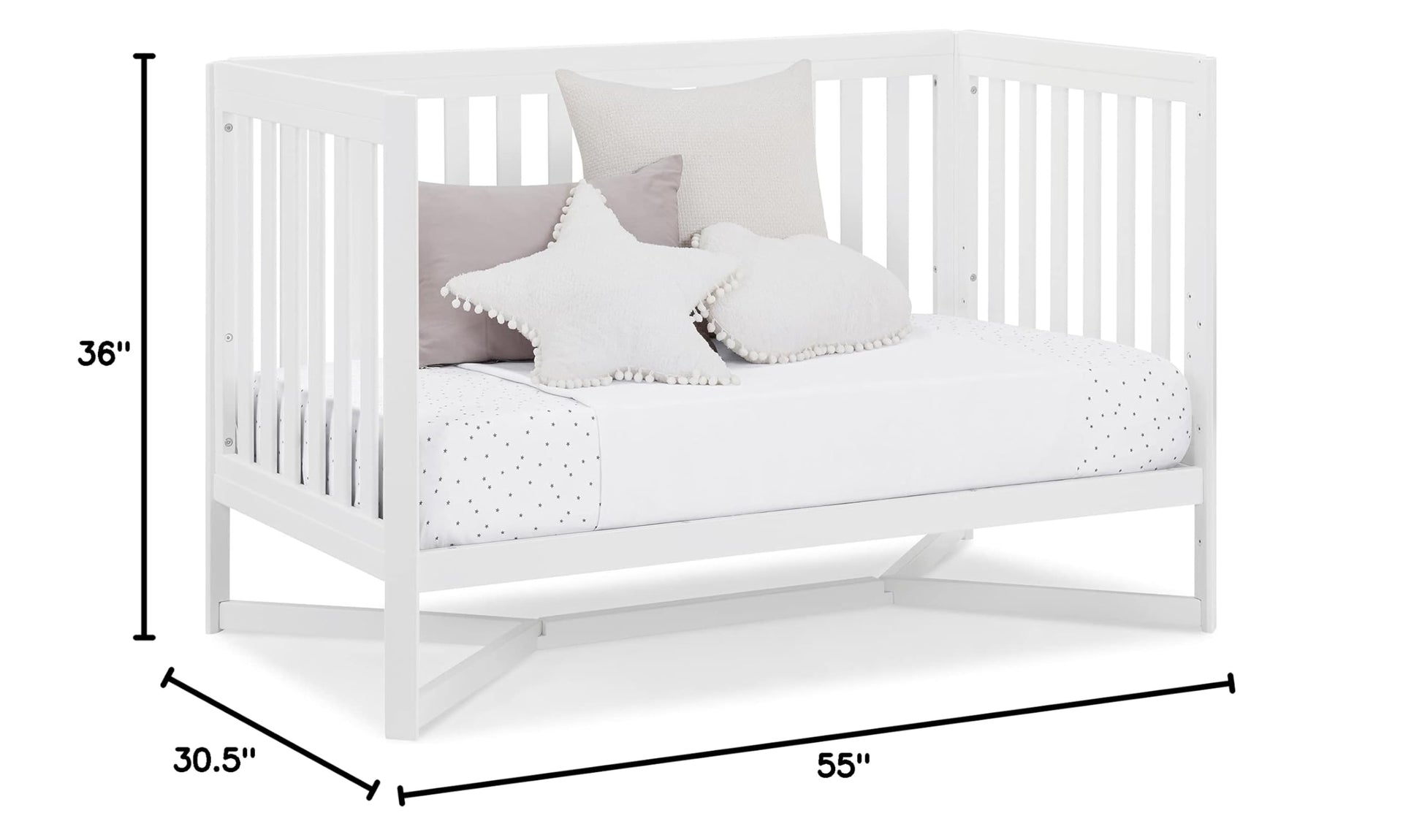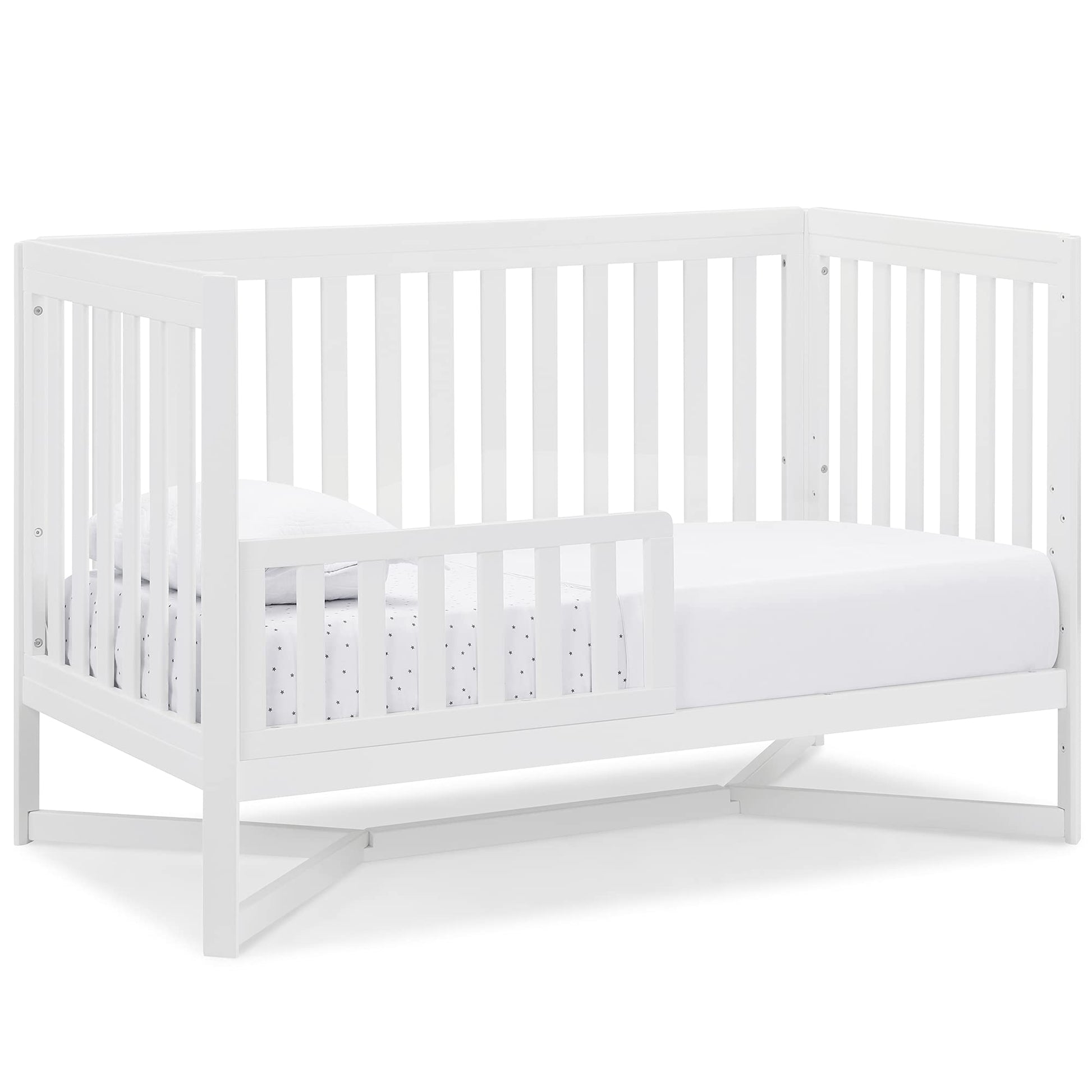 Details: Designed to be the centerpiece of your nursery, The Tribeca 4-in-1 Convertible Crib by Delta Children exudes contemporary cool. Featuring plenty of modern touches it boasts a sleek x-shaped base and airy slats. Crafted from strong and sturdy wood, this crib features three height levels, and converts to a toddler bed, daybed and full size bed, making it the only bed your baby will every need. Toddler Guardrail #0080, full size wood bed rails #0050 or full size Metal bed frame #0040 sold separately. Delta Children was founded around the idea of making safe, high-quality cribs affordable for all families. That's why all Delta Children cribs are JPMA certified, and are tested above and beyond industry standards.
