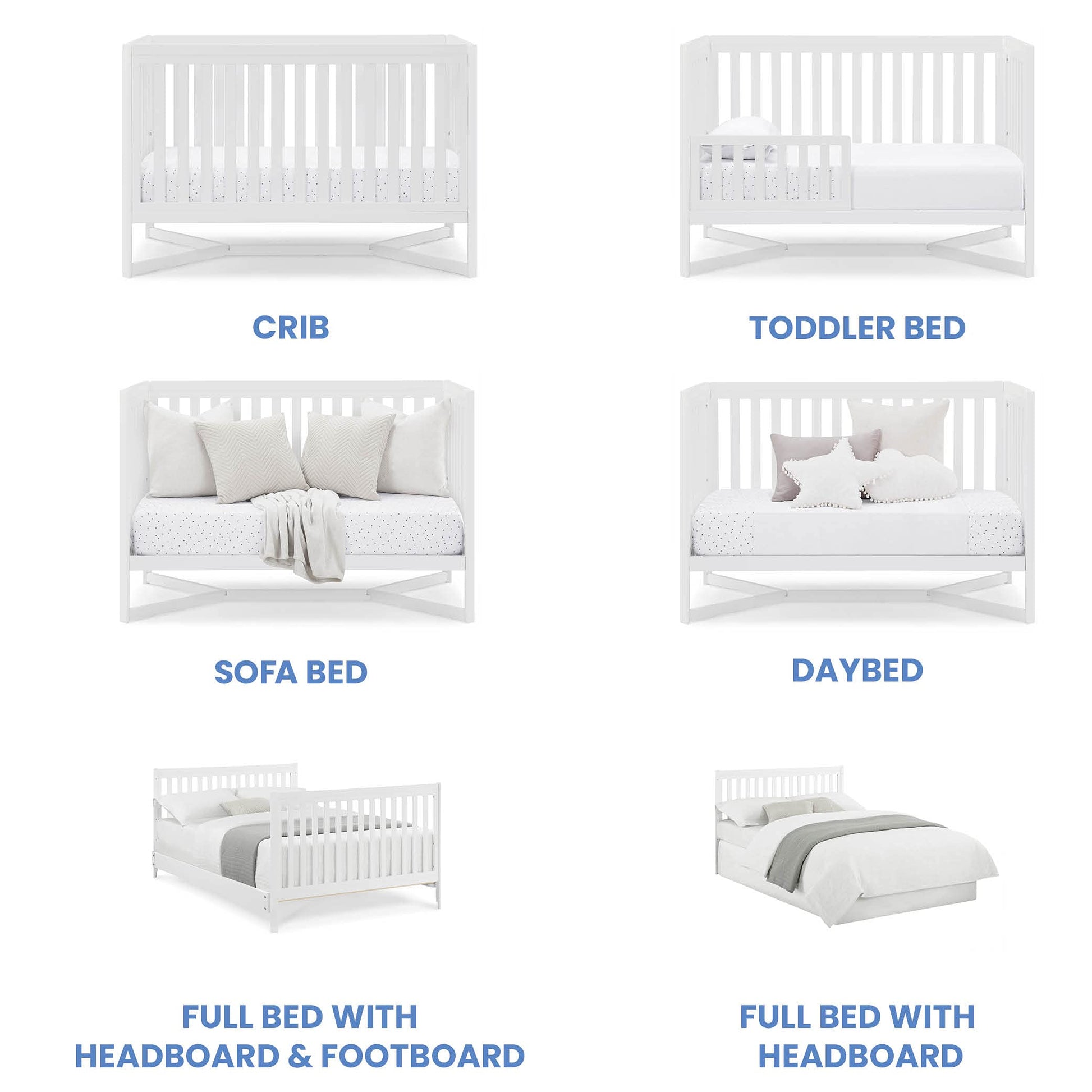 - 4-IN-1 CONVERTIBLE CRIB: Crib converts to toddler bed, daybed, sofa, a full size bed with headboard and footboard and a full size bed with headboard only (Toddler Guardrail #0080, Full Size Wood Bed Rails #0050 or Full Size Metal Bed Frame #0040 sold separately) | Available in multiple solid colors and two-tone colors