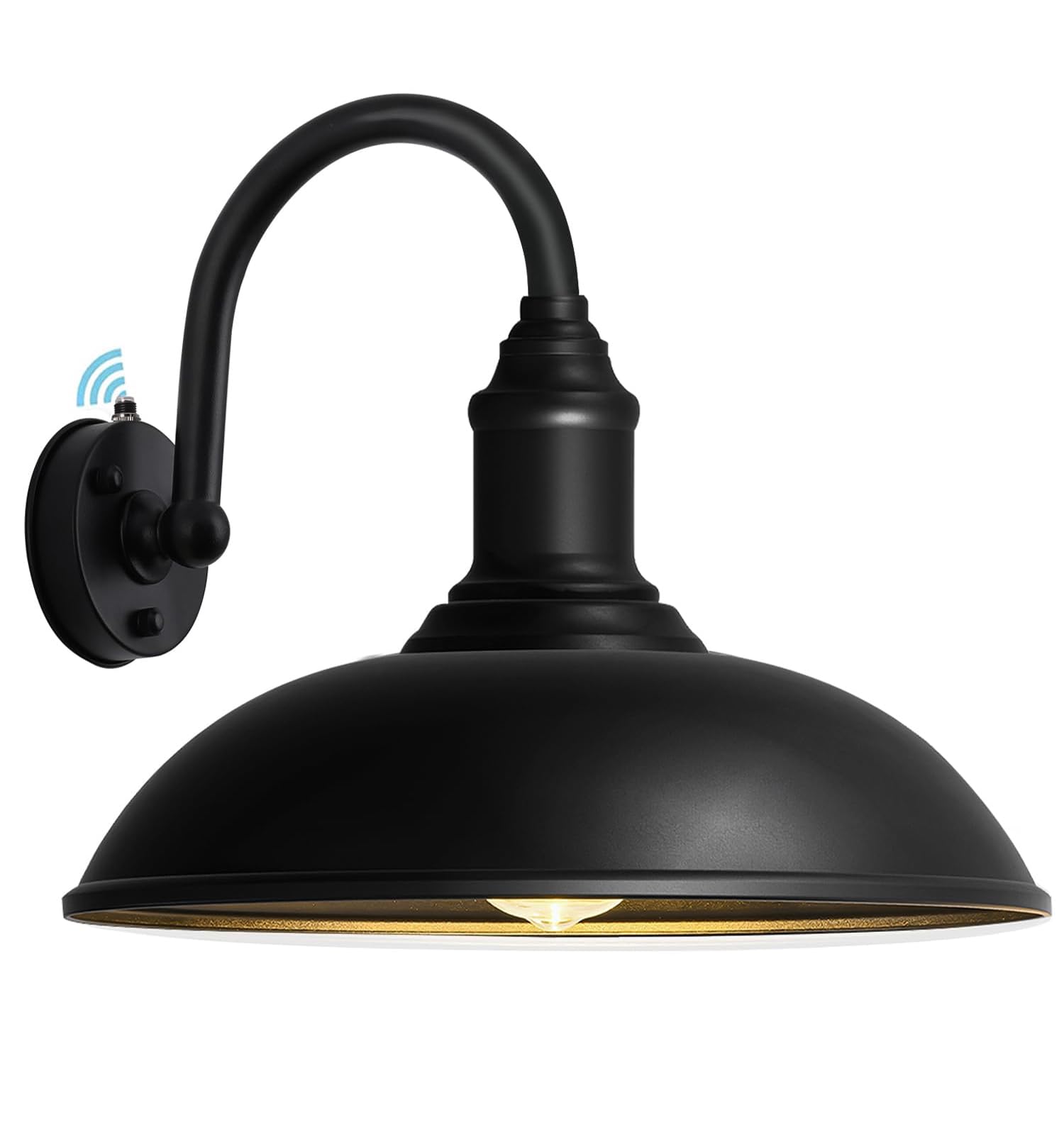 Large 18" Outdoor Barn Gooseneck Light Dusk to Dawn, Classic Farmhouse Barn Wall