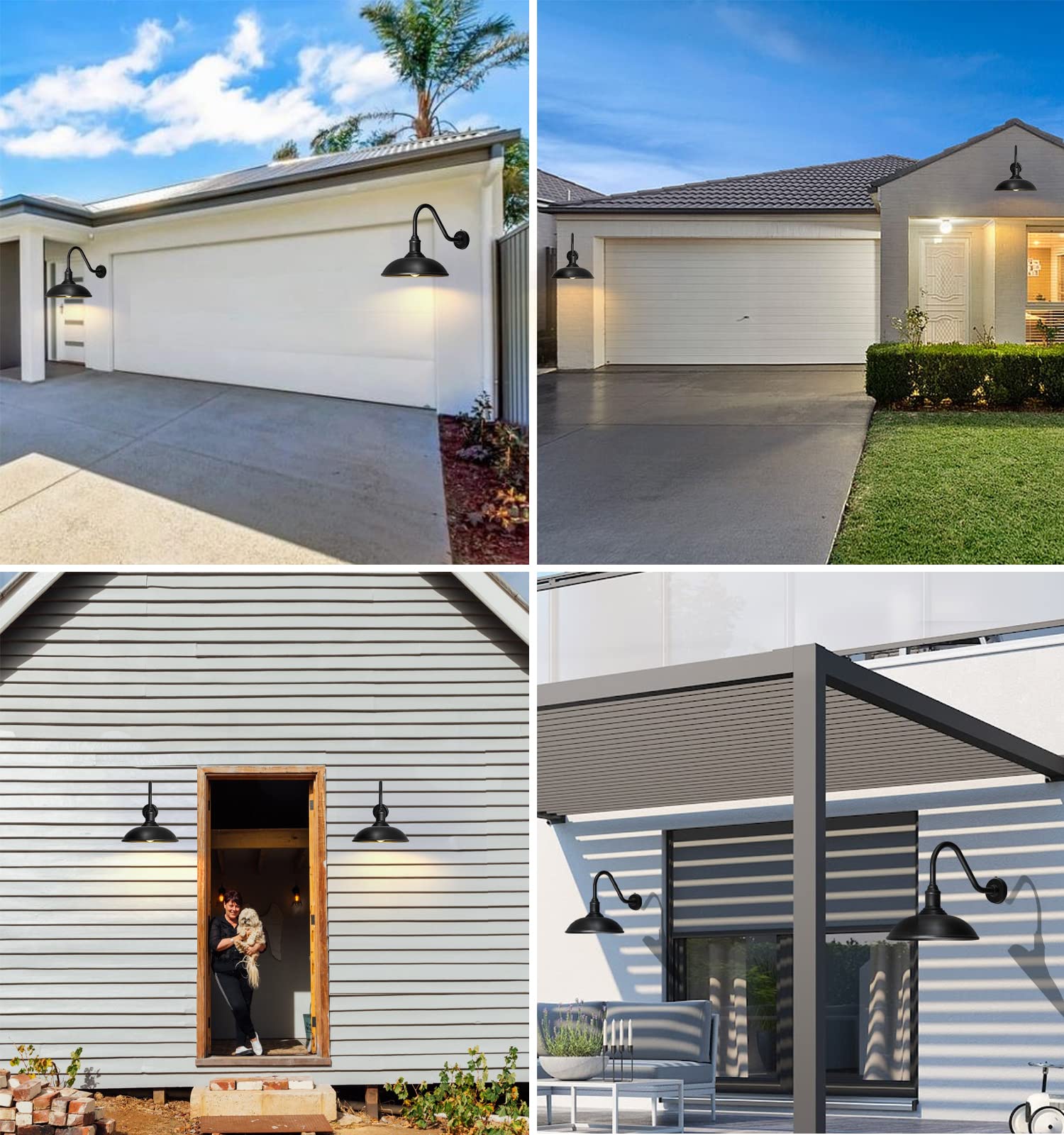 - Modern Industrial Outdoor Gooseneck Light Design:Our Stylish Outdoor Gooseneck Light Design Enhances The Beauty Of Your Yard. The Minimalist Look Of The Lampshade Complements The Gooseneck Arc Light Pole, Adding Movement To Your Installation Space.These Outdoor Barn Lights Provide Ample Lighting For Your Property