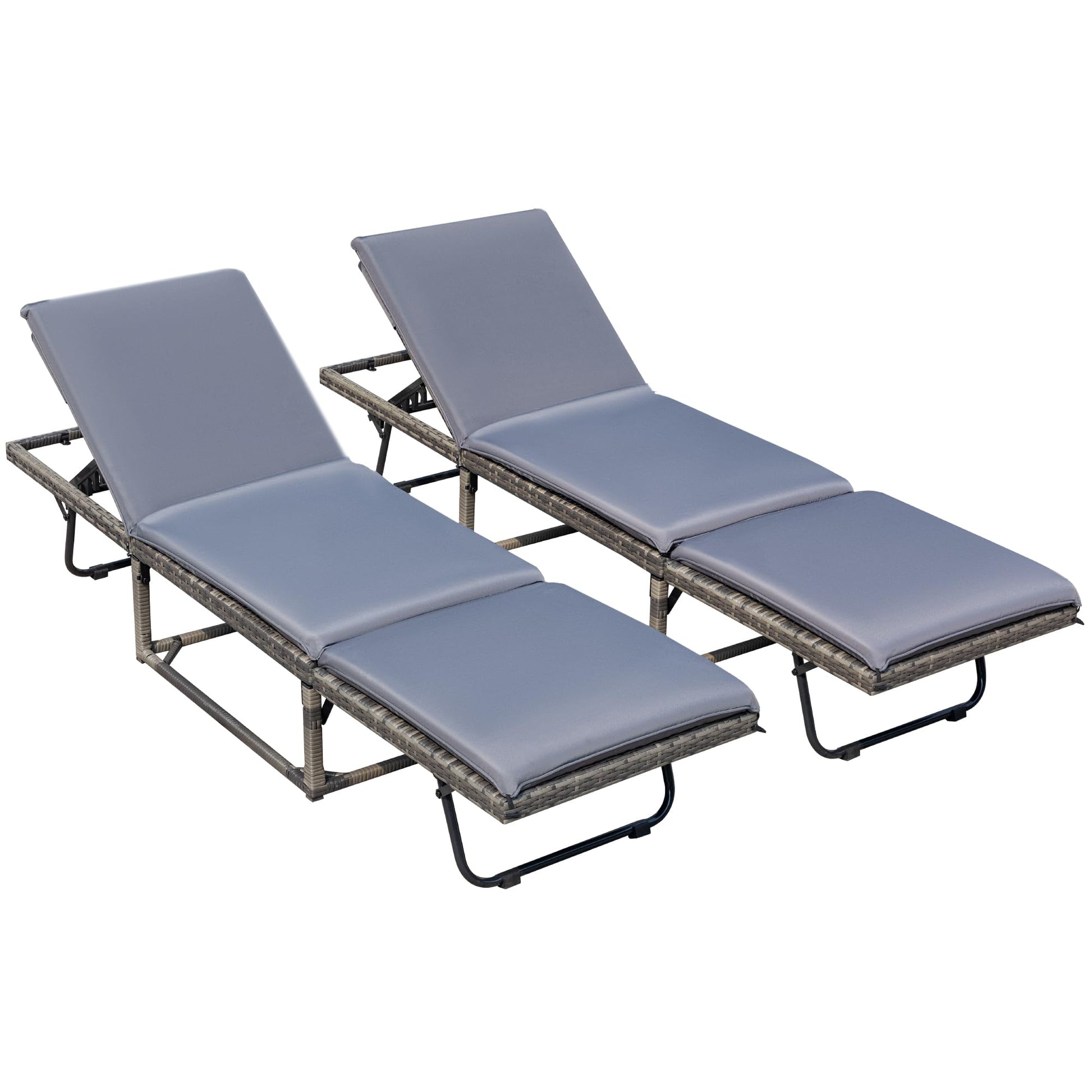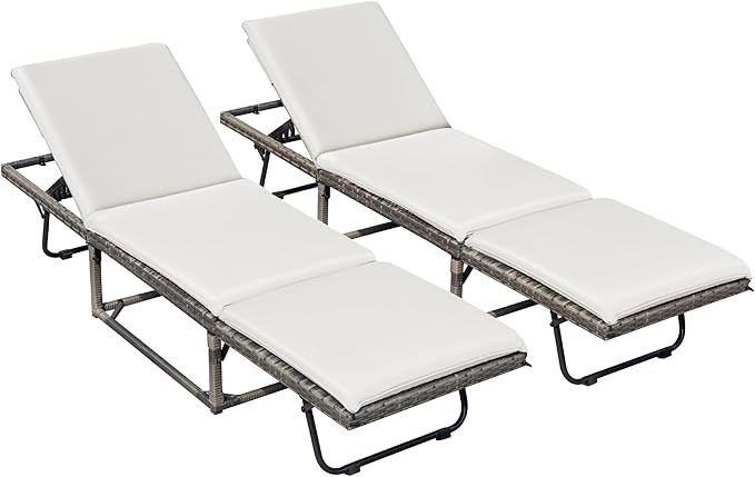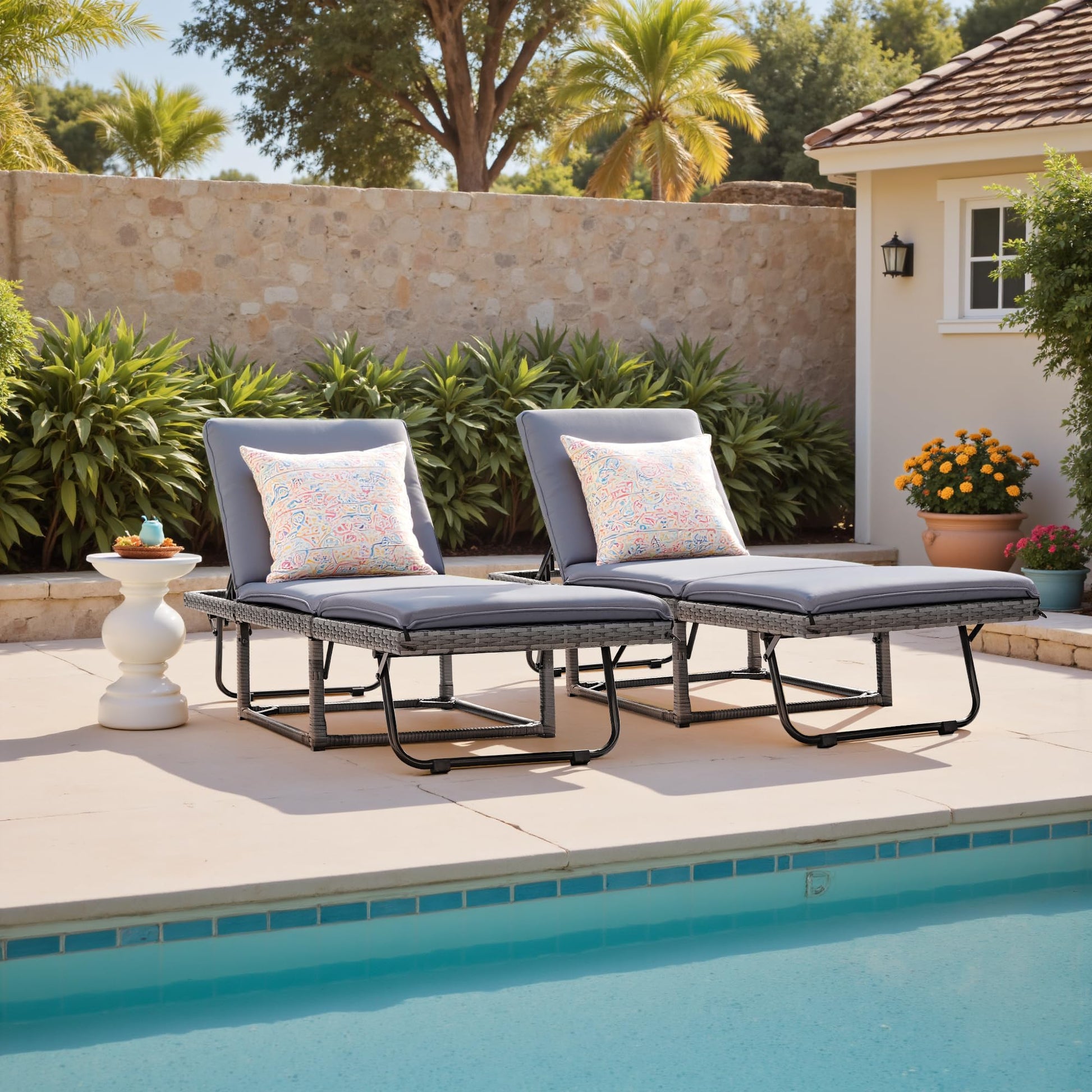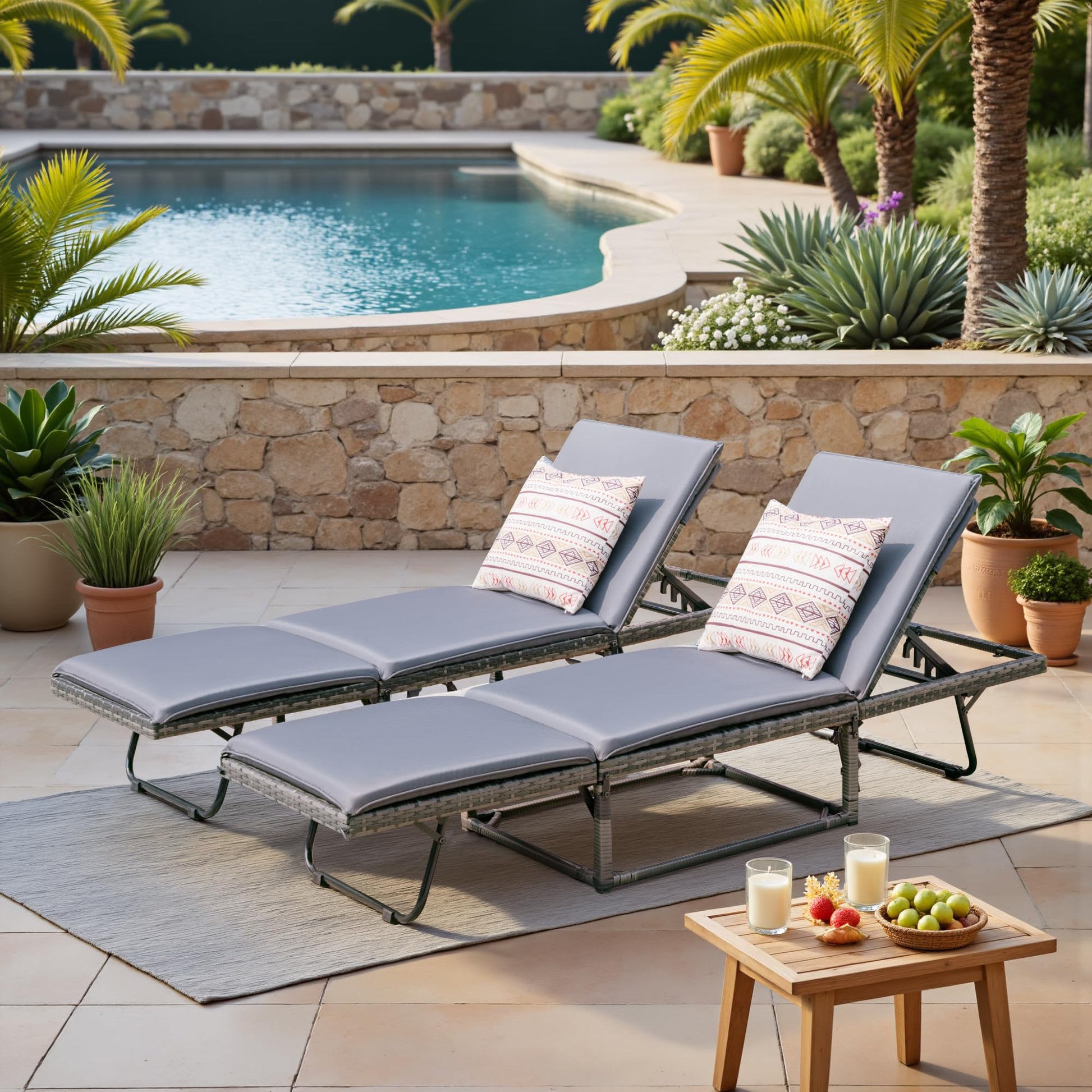 Foldable Rattan Chaise Lounge 2-Pack, 5-Angle Adjustable Backrest Patio Chairs for Beach
