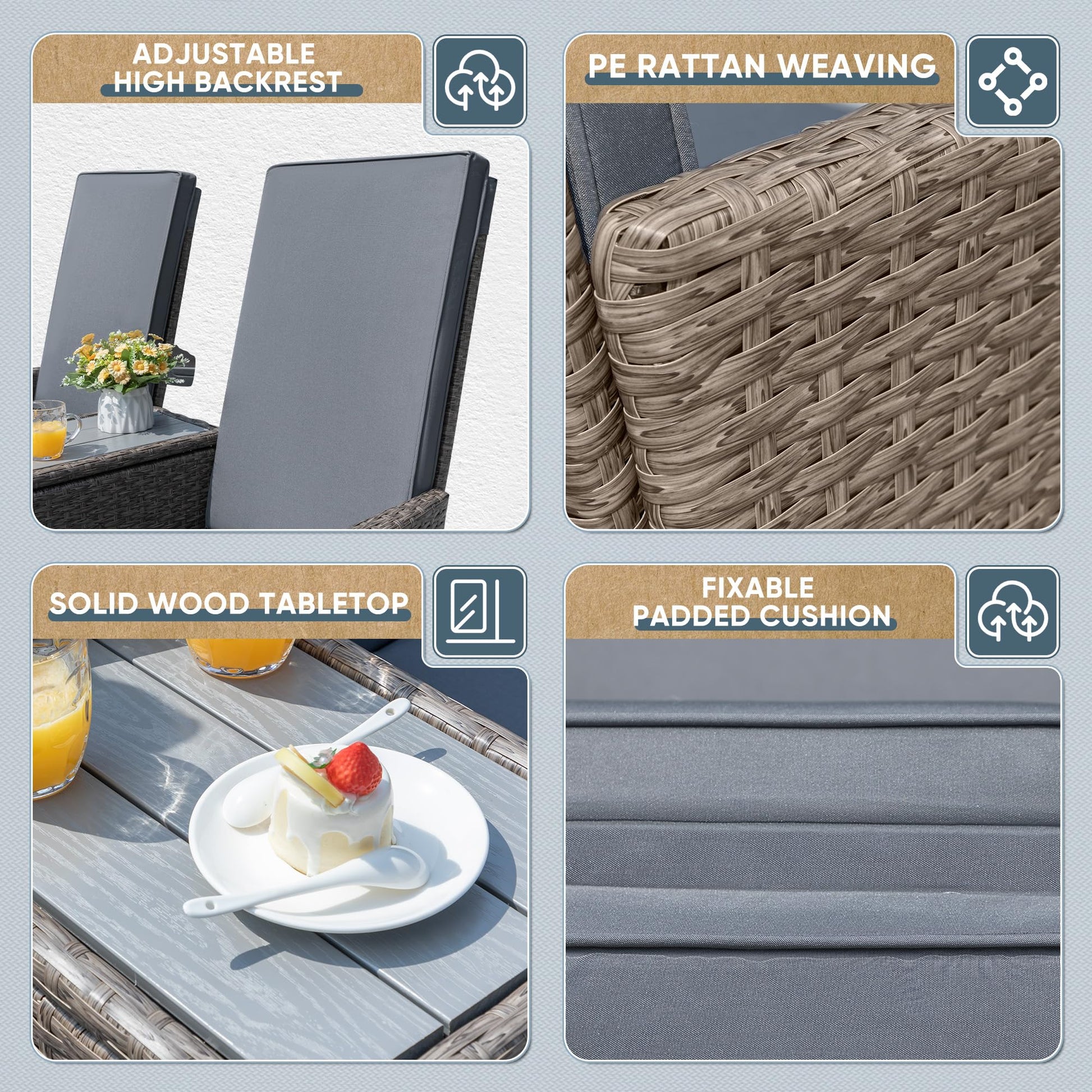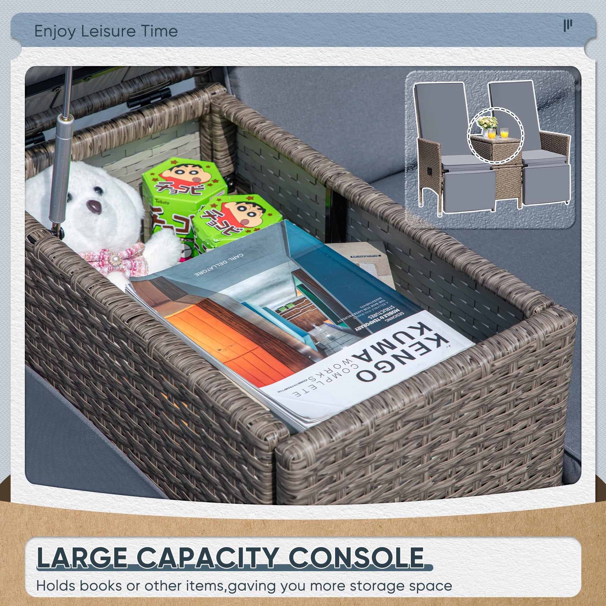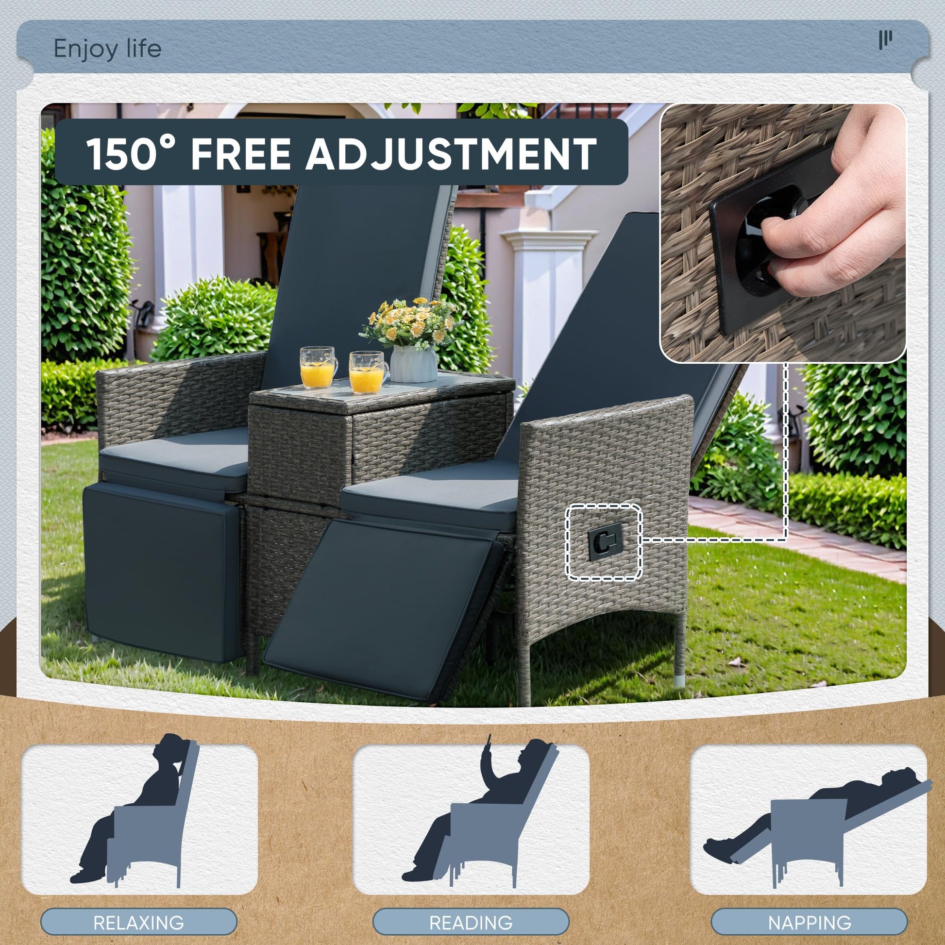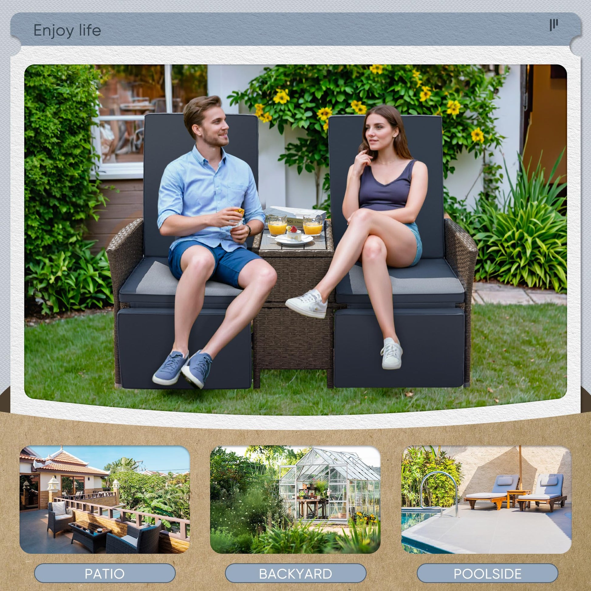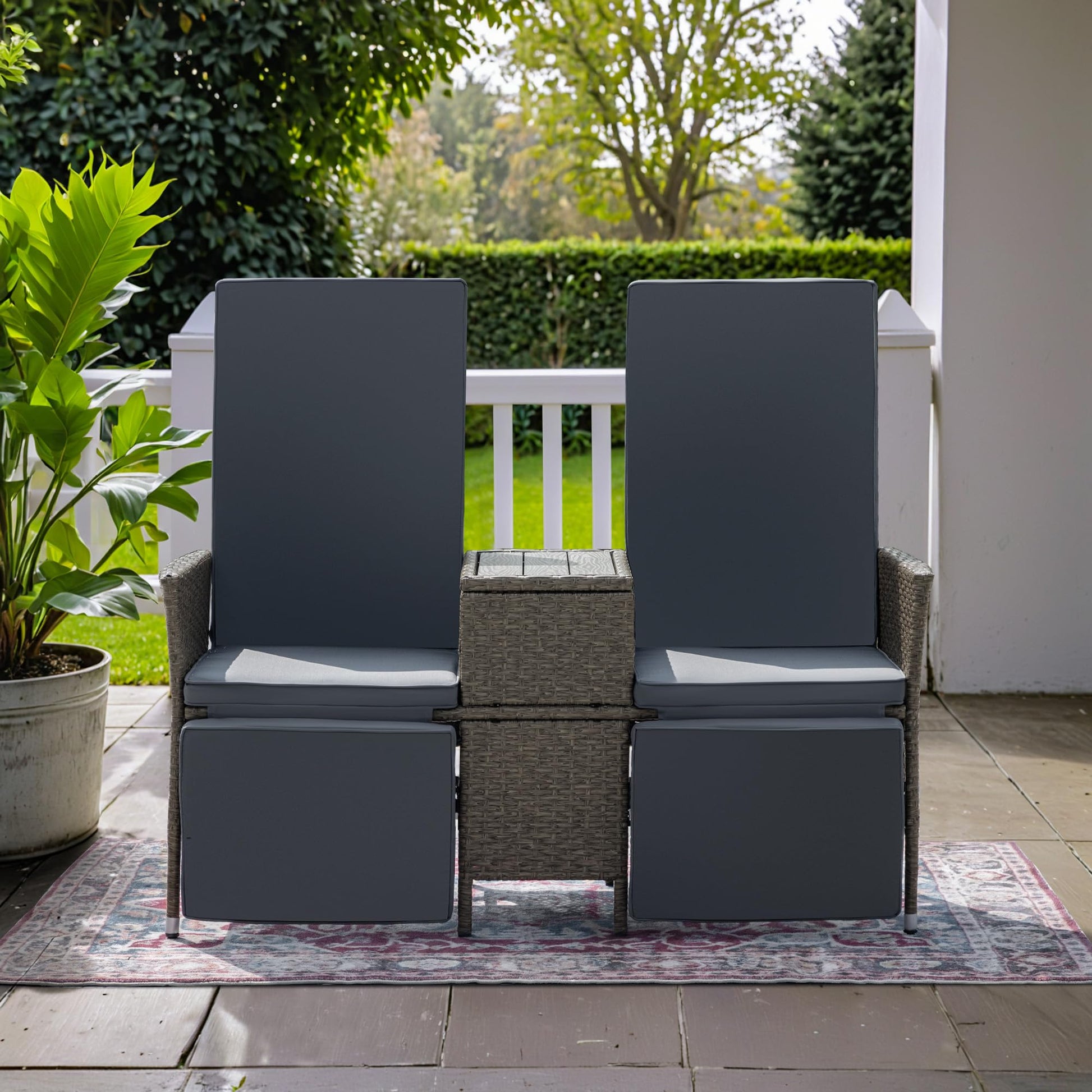 Patio Recliner Loveseat Chair, Adjustable Backrest Wicker Conversation Set