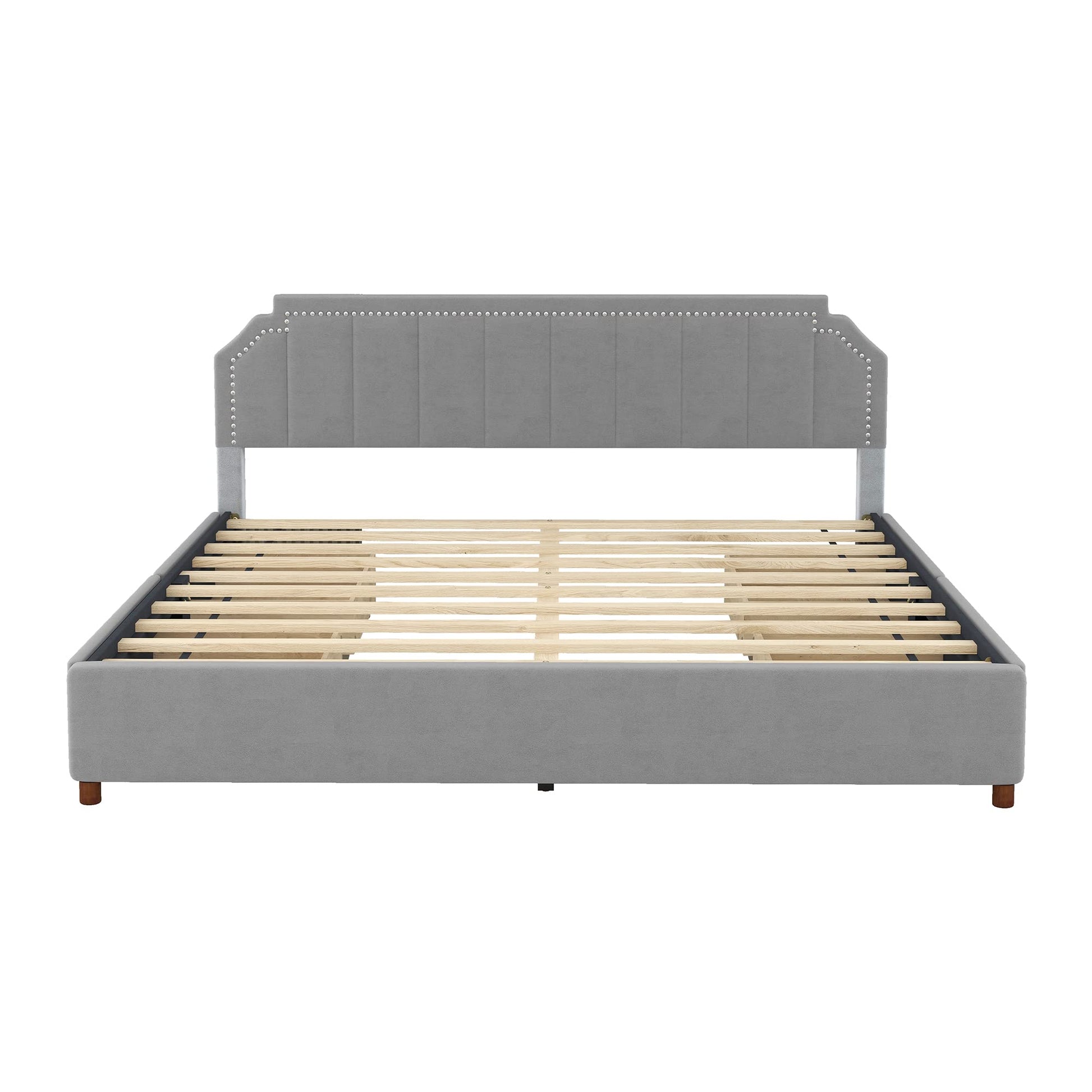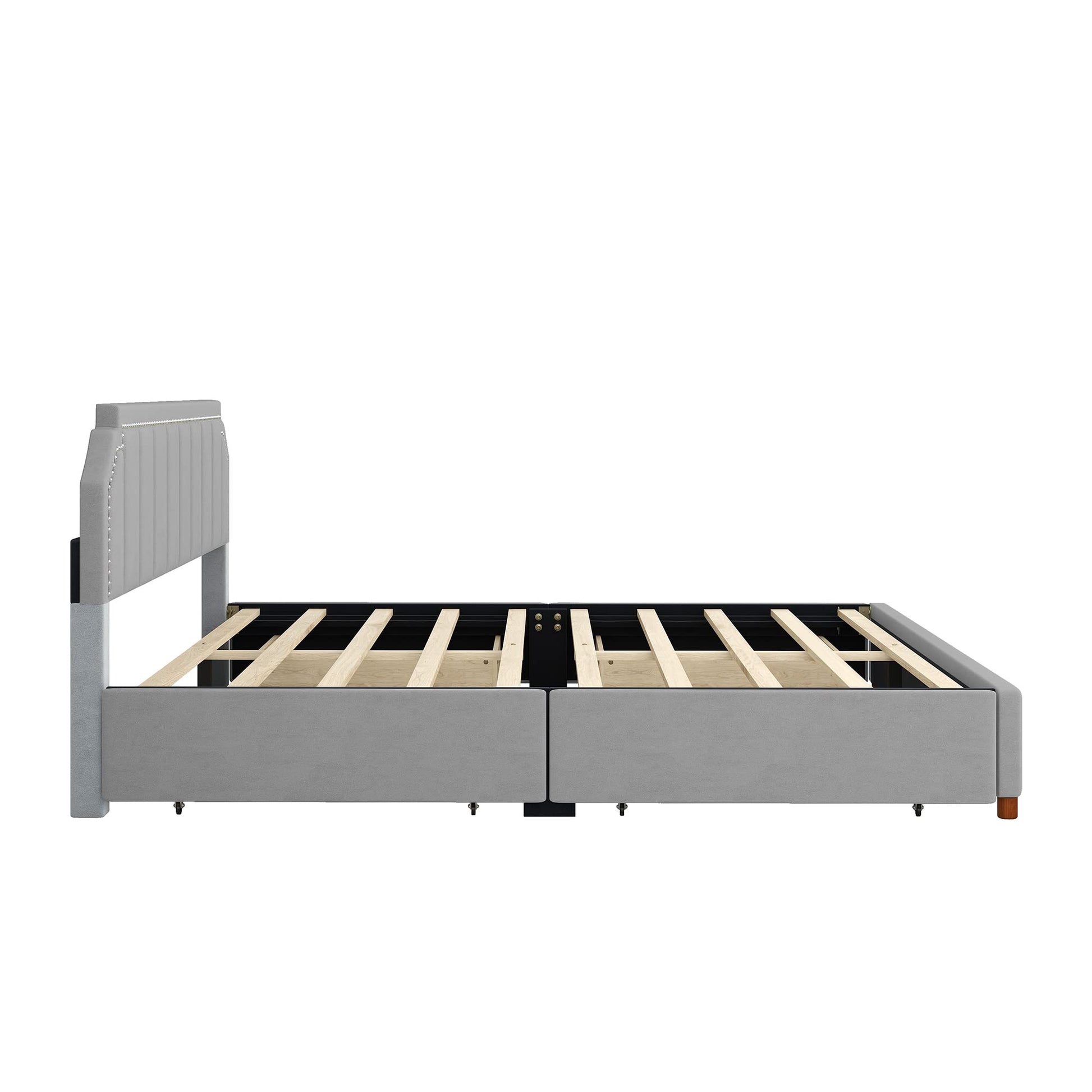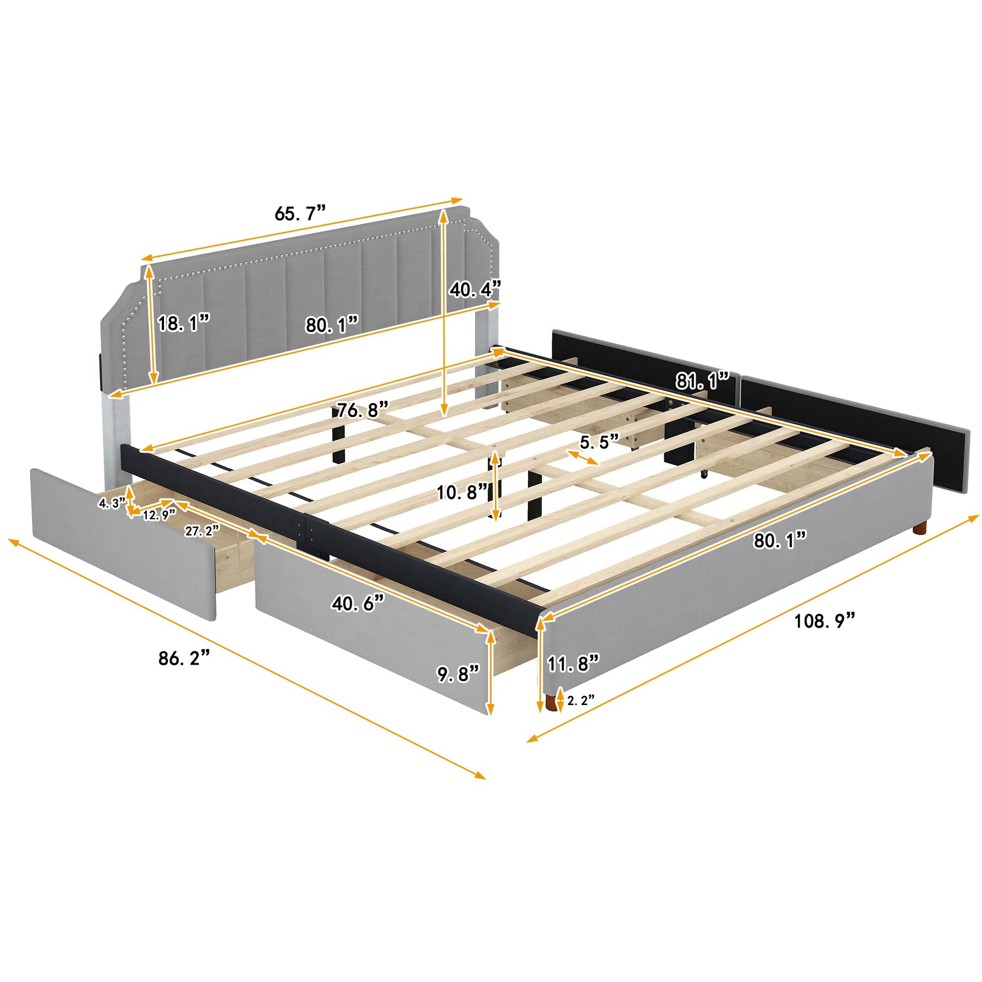 King Size Upholstered Platform Bed with Headboard, 4 Storage Drawers, and Support Legs,
