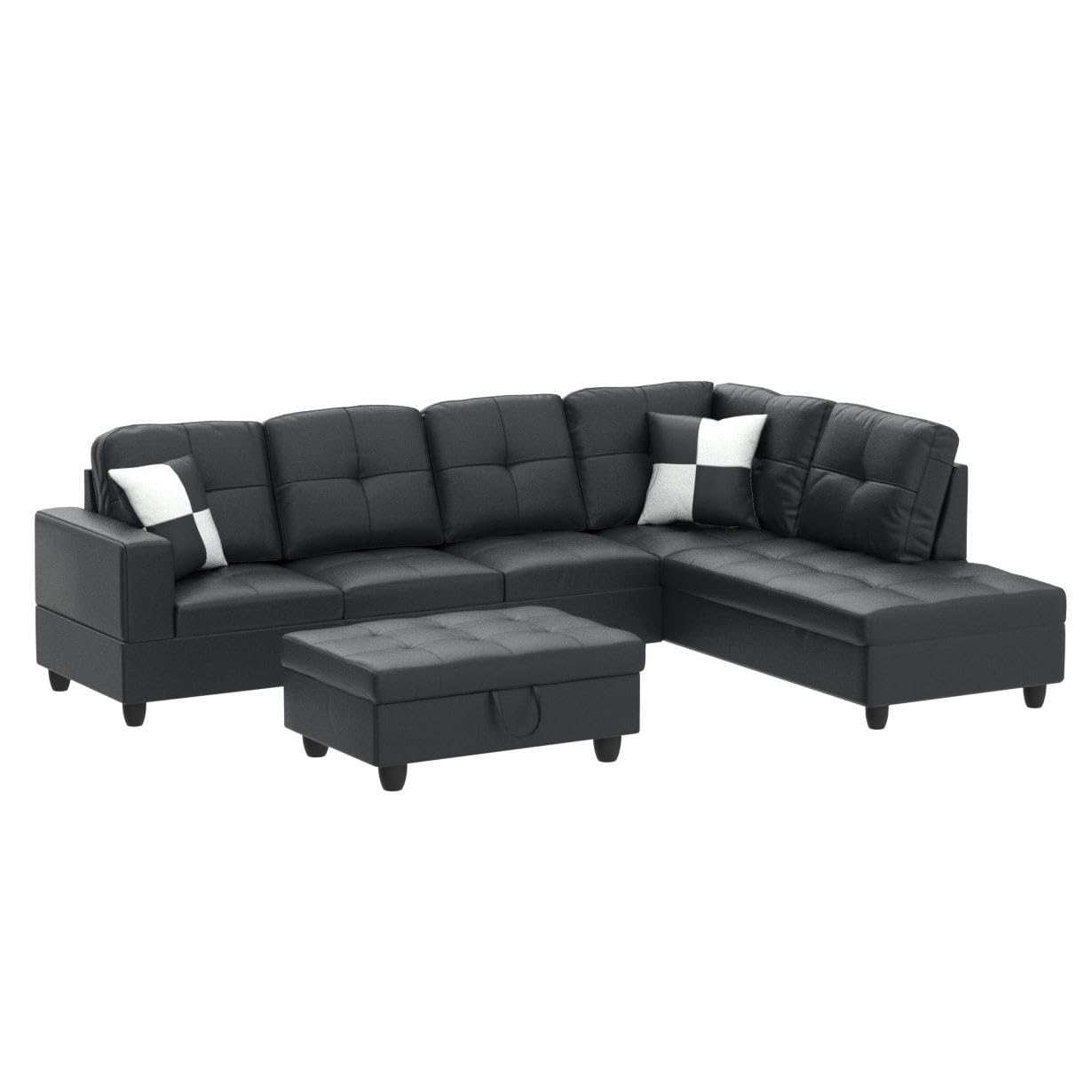 3 Piece Living Room Furniture Sets, L-Shaped Sectional Sofa