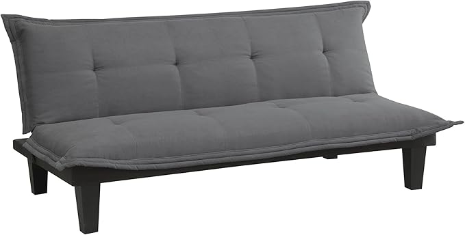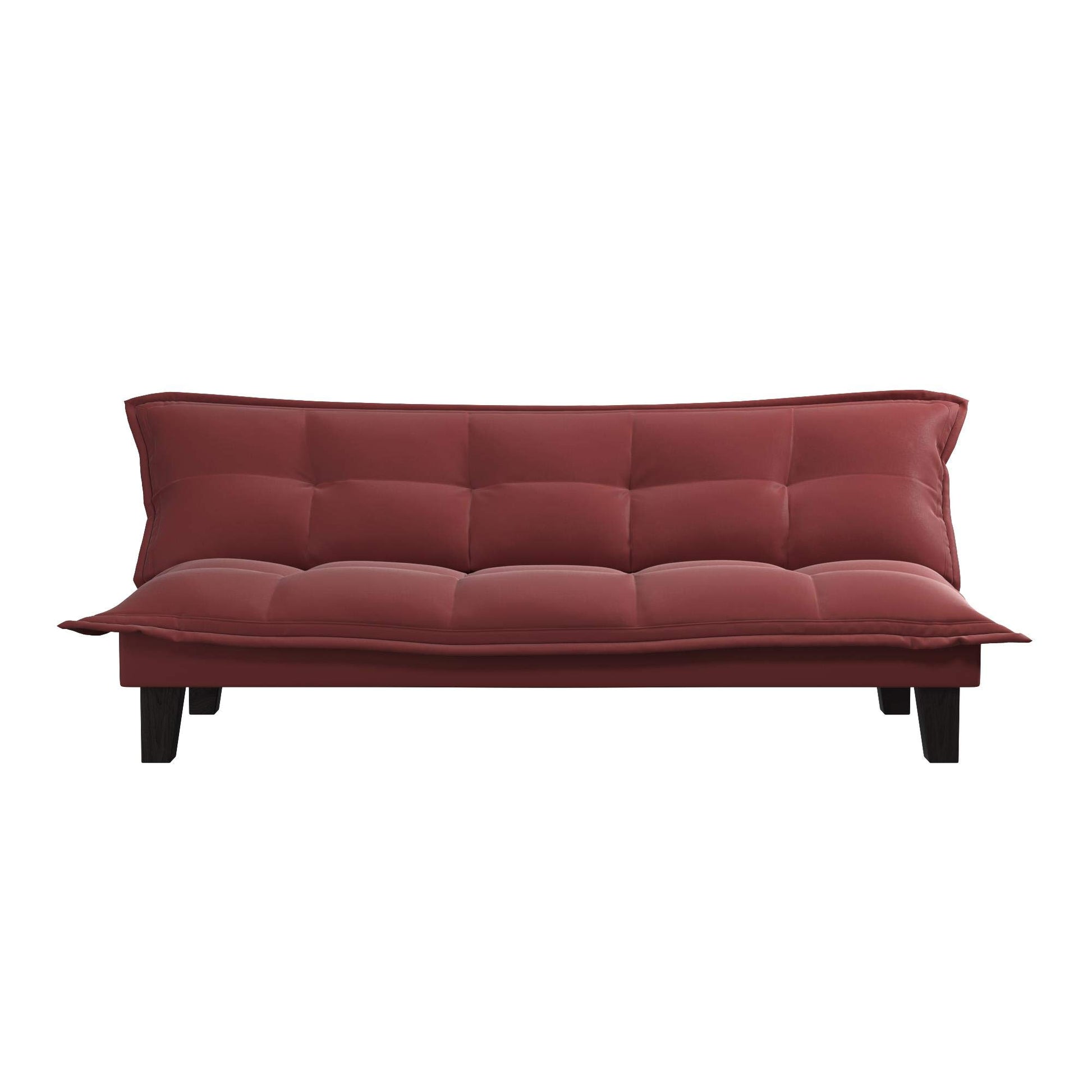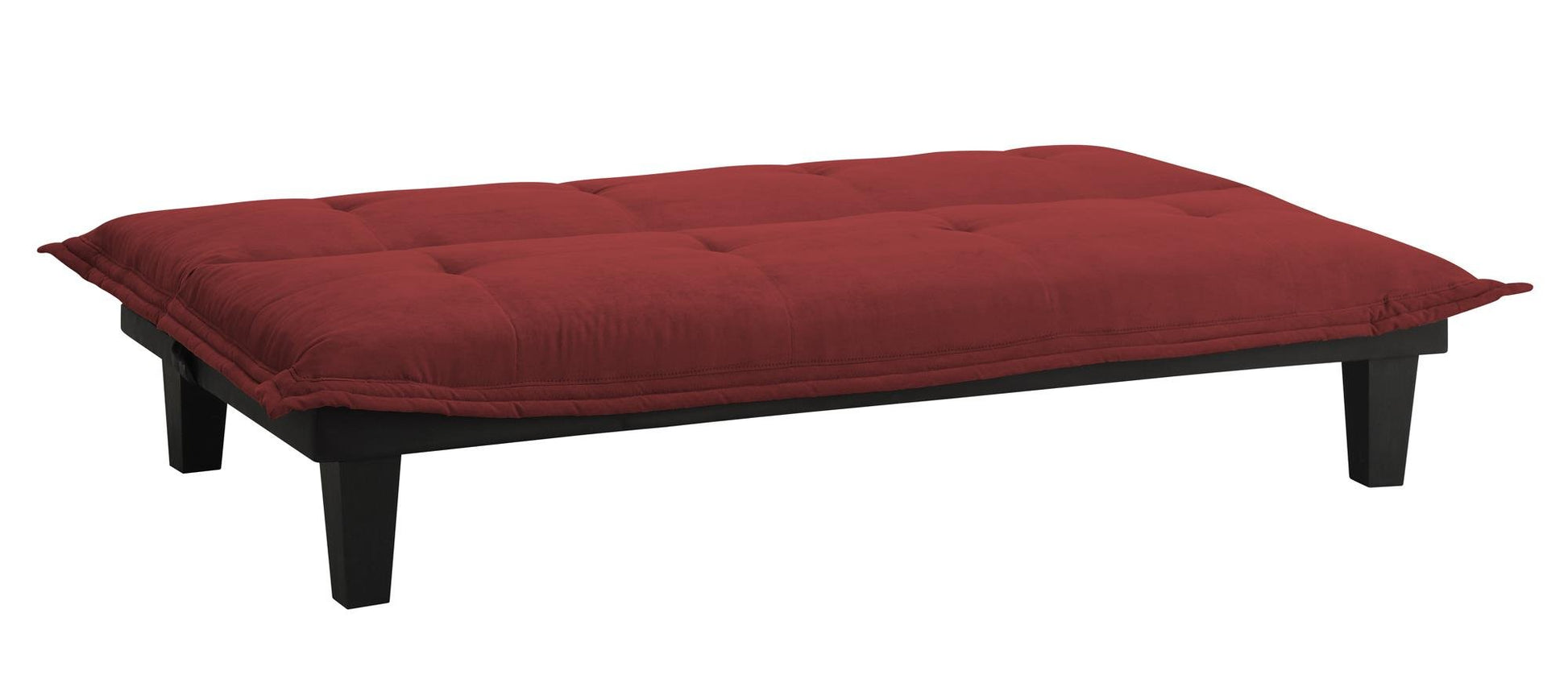 Lodge Convertible Futon Couch Bed with Microfiber Upholstery and Wood Legs, Red