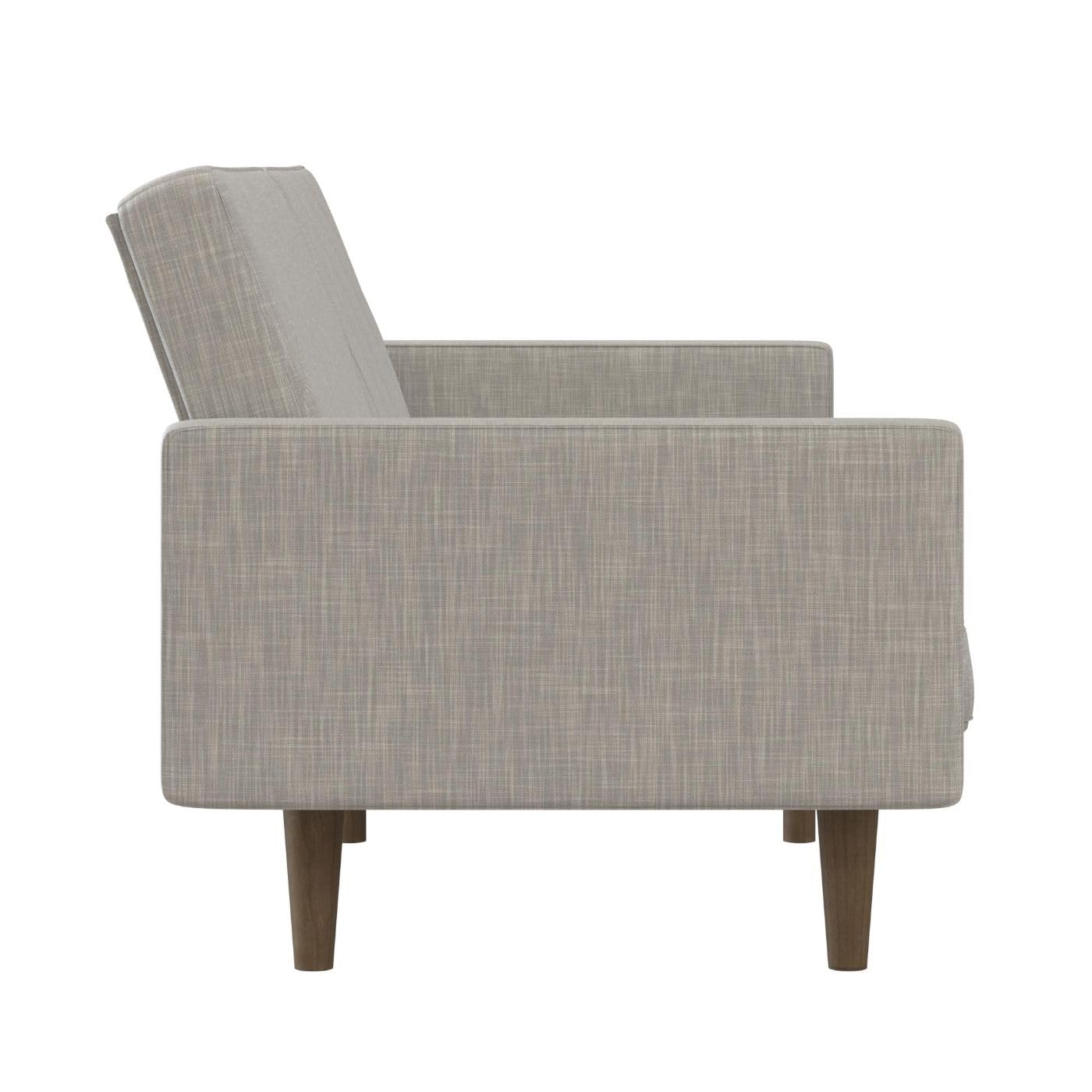 Paxson Convertible Futon Couch Bed with Linen Upholstery and Wood Legs