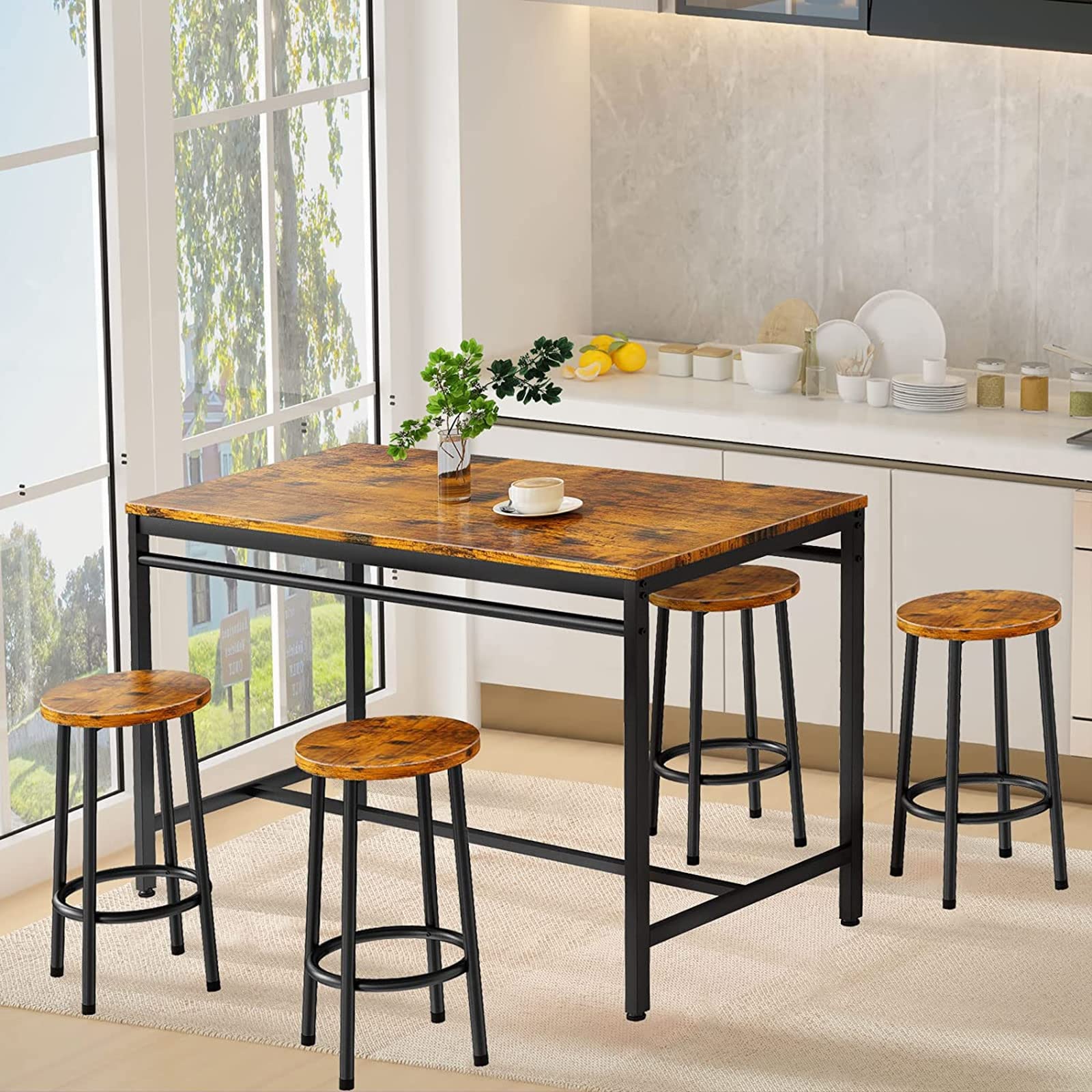 - Small Dining Table for 4: This pub table set is designed for 4 people and is very suitable for kitchens or apartments in spaces. With ample space under the table, you can put the stool underneath the table to expand the space when you are not using it.