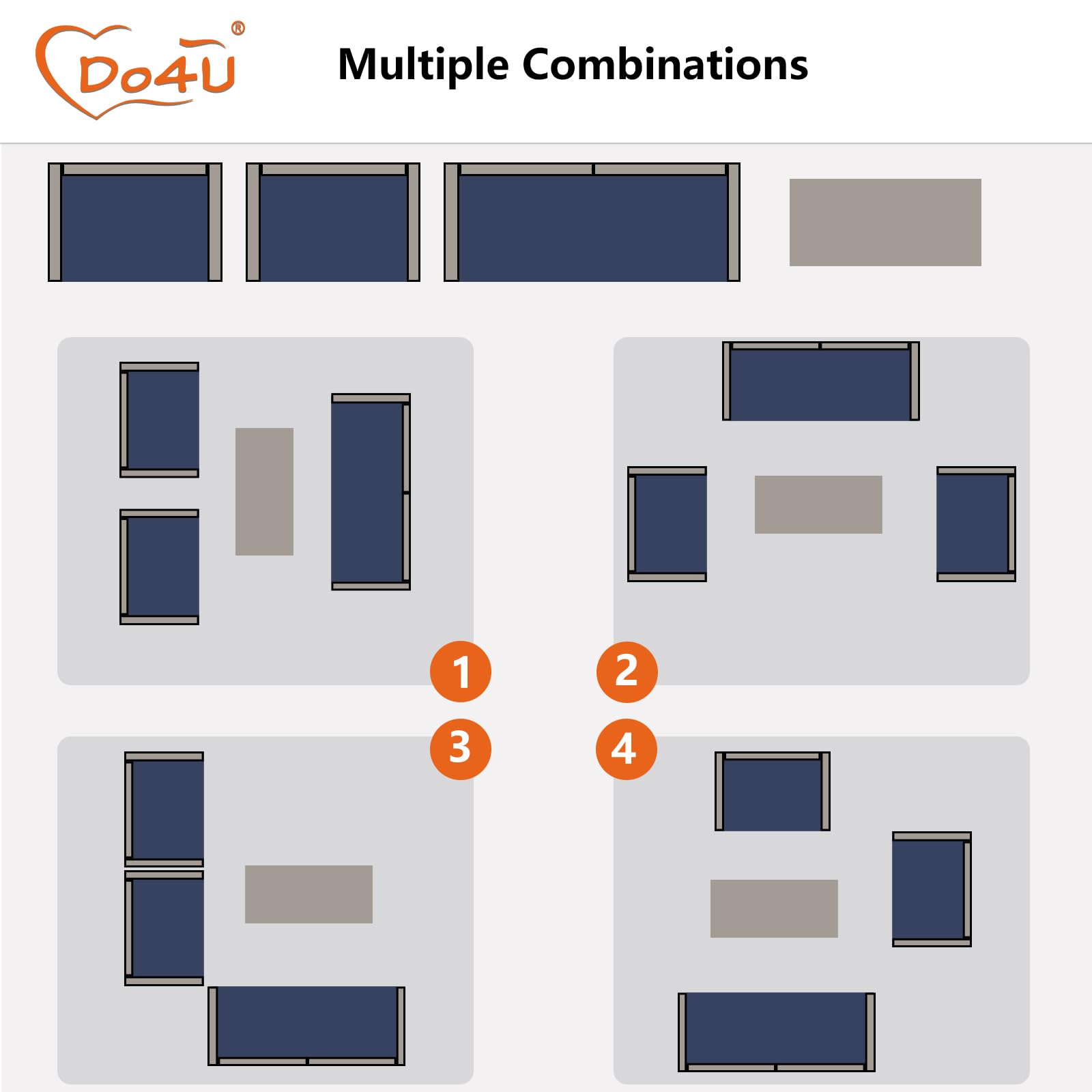 - Multiple Combinations This minimalism 4-piece wicker sofa set can be placed into different combinations to adapt to your patio, backyard, poolside, deck, or indoor space. Outdoor Furniture includes :1 x loveseat 2 x single chairs 1 x coffee table with tempered glass tabletop 1 x double cushion 2 x single cushions .screw pack, wrench, and instructions.