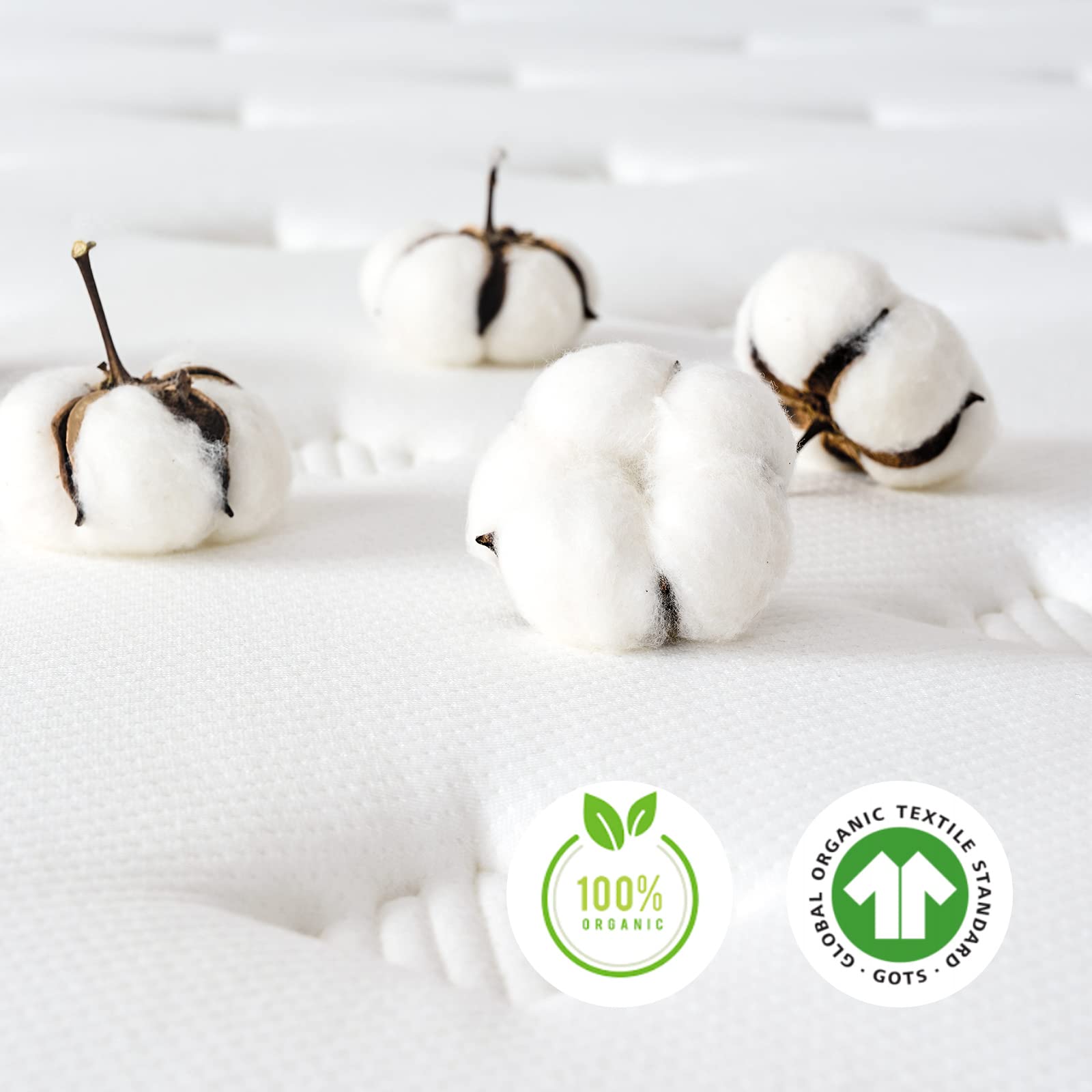 - 100% Organic Cotton Fabric 10 inch full mattress knitted fabric is made of 100% organic cotton, which has passed GOTS certification to provide you with a soft and skin-friendly experience.