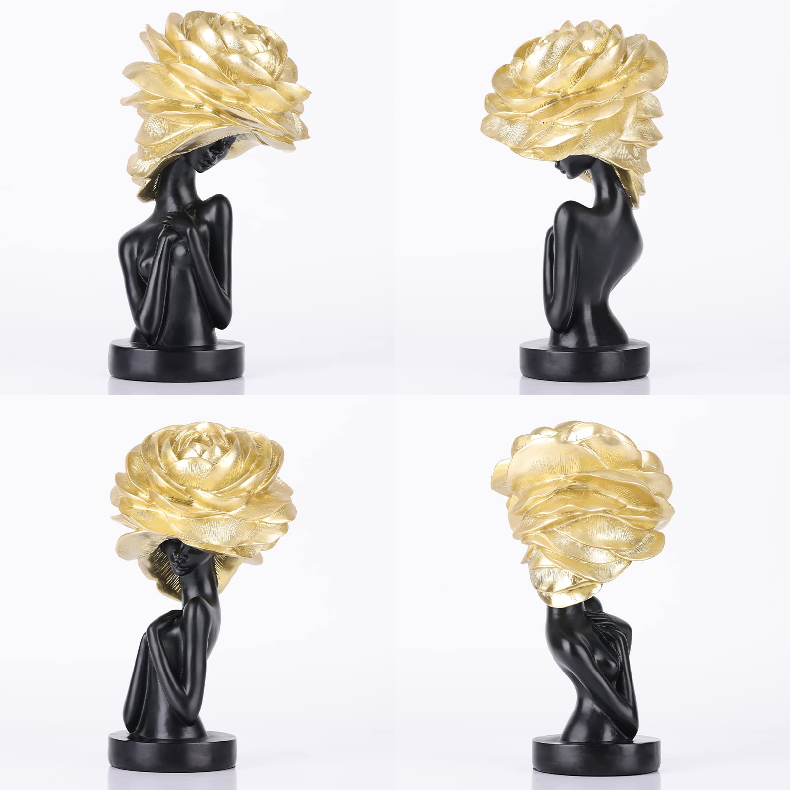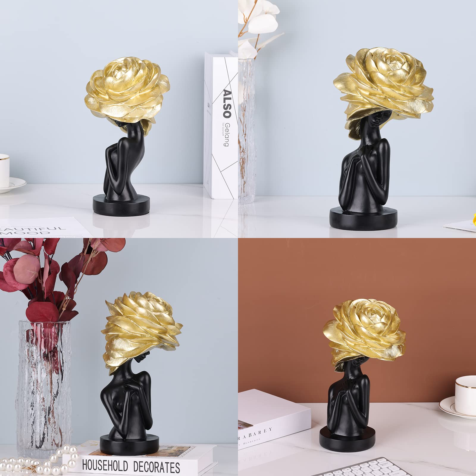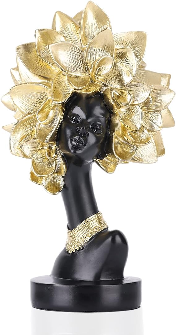 - Statue design: The resin African statue features a bust design with a black plus gold colour scheme, the black body head with gold flowers is a stylish and elegant modern home decor statue for your home.