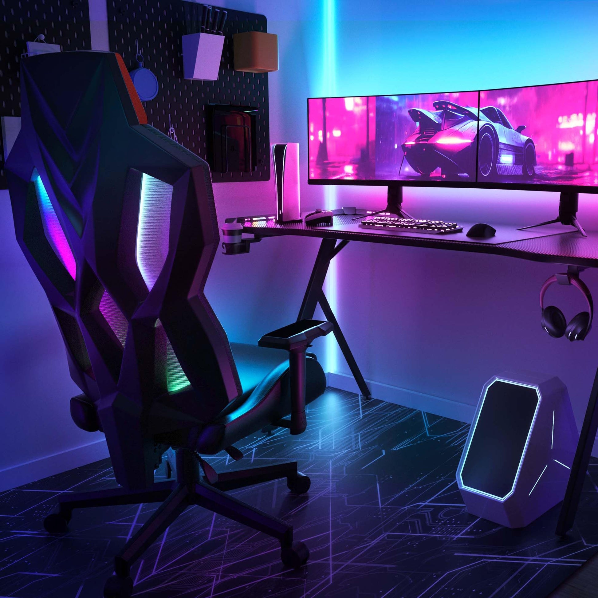 RGB Gaming Chair with LED Lights, Ergonomic Computer Chair for Adults