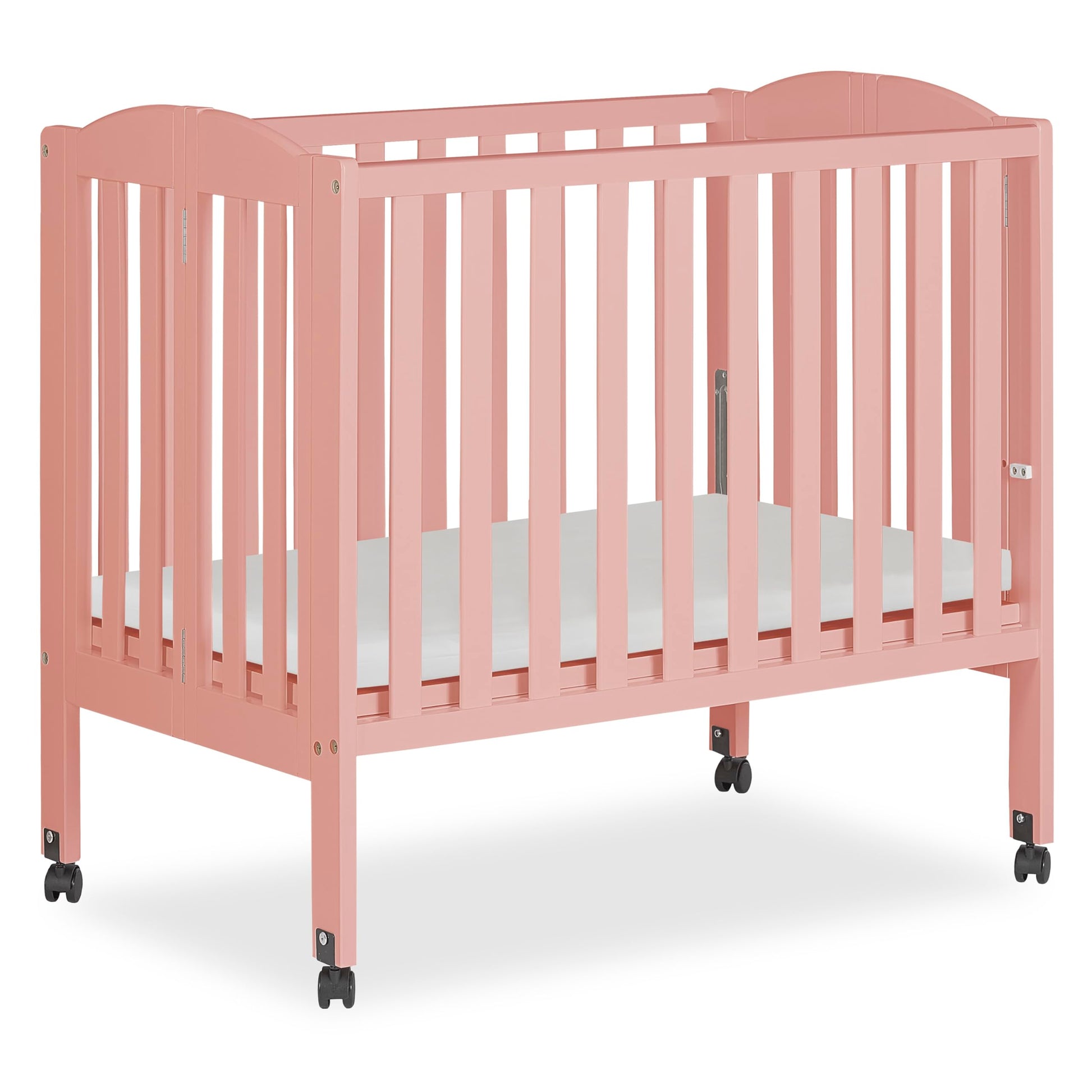 2-in-1 Portable Folding Stationary Side Crib in Dusty Pink, Greenguard Gold Certified