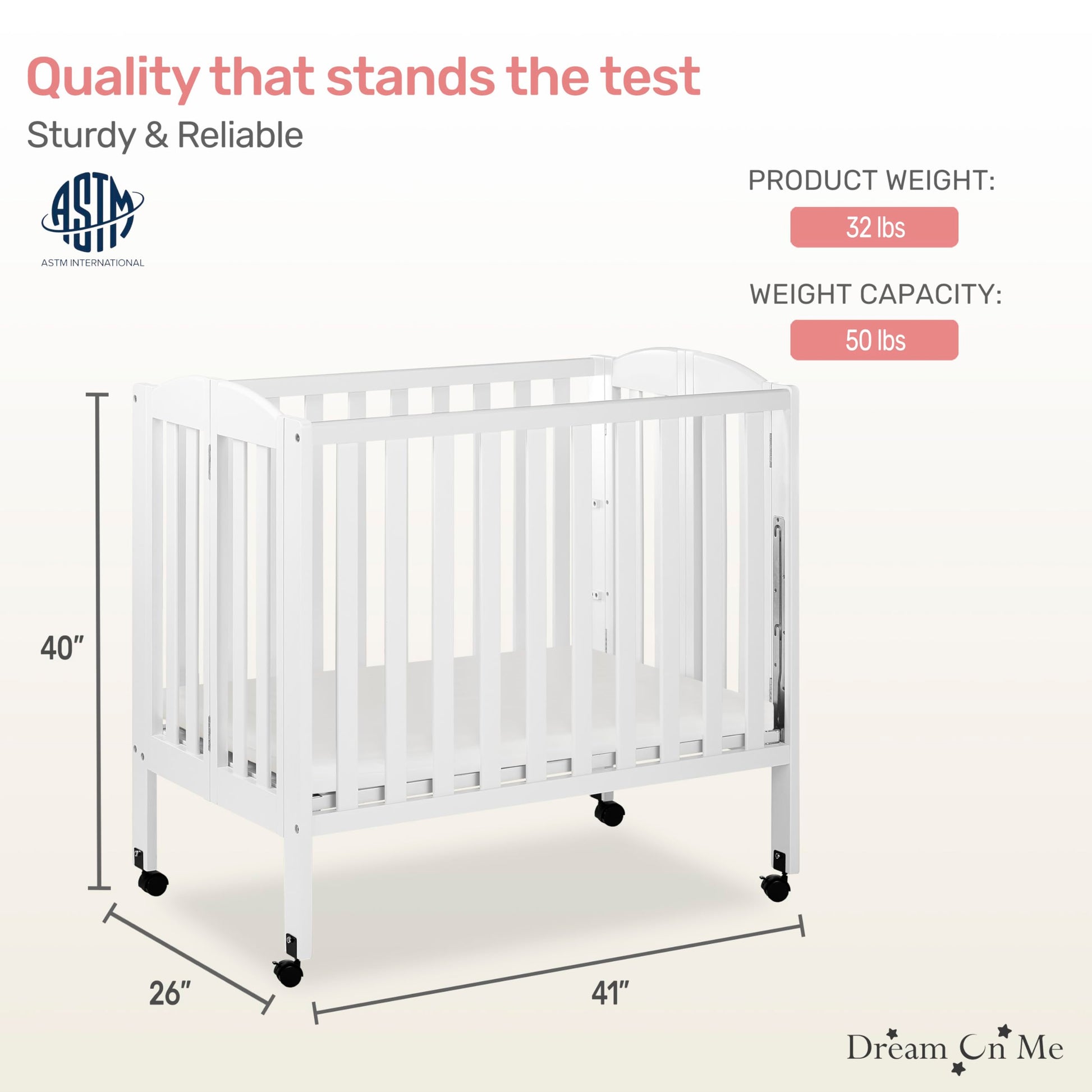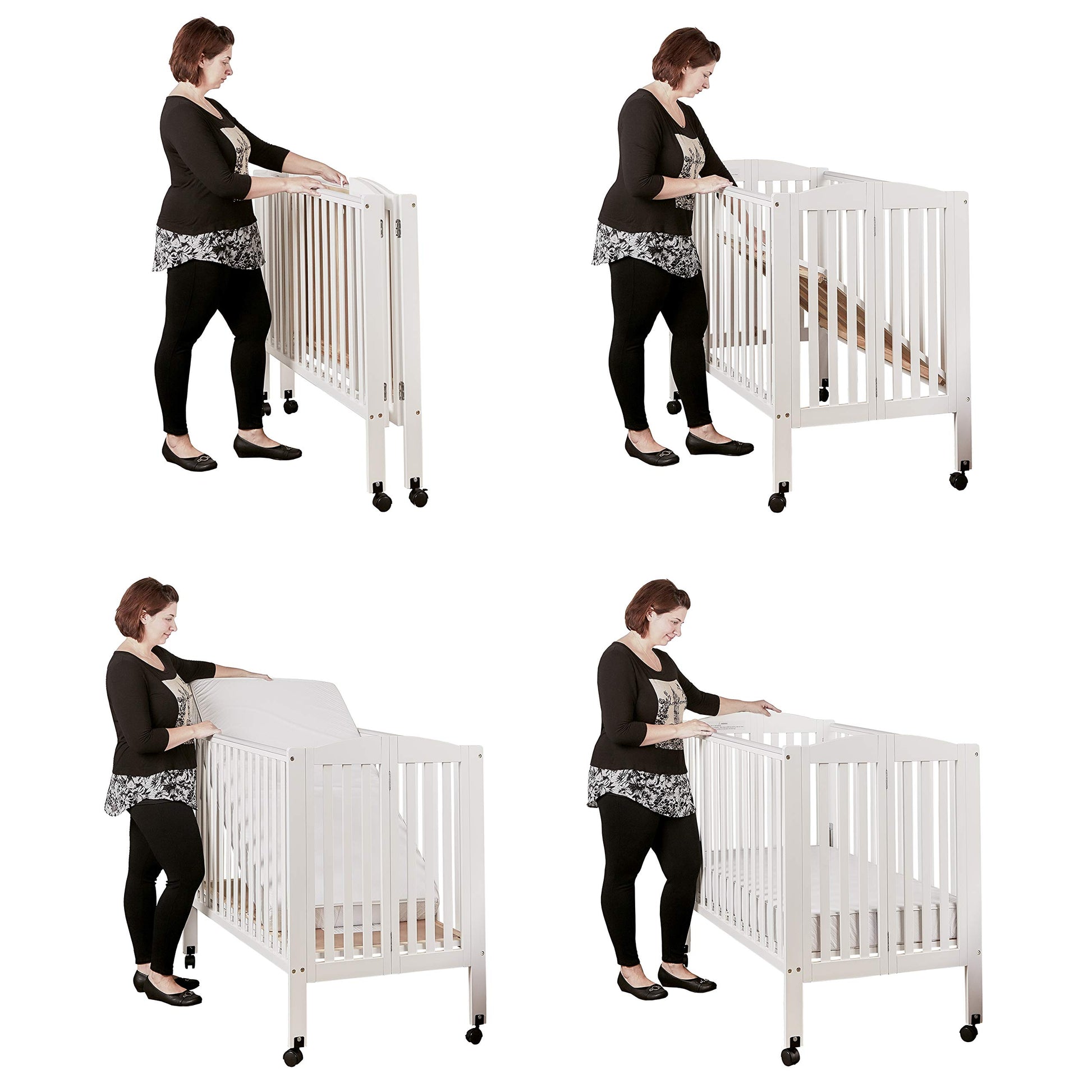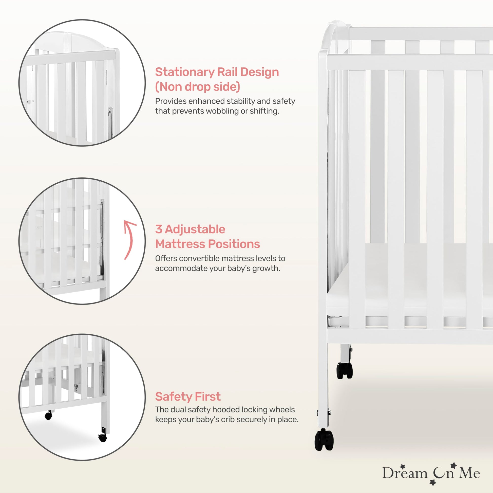 3 in 1 Portable Folding Stationary Side Crib in White, Greenguard Gold Certified, Safety Wheel with Locking Casters, Convertible, 3 Mattress Heights