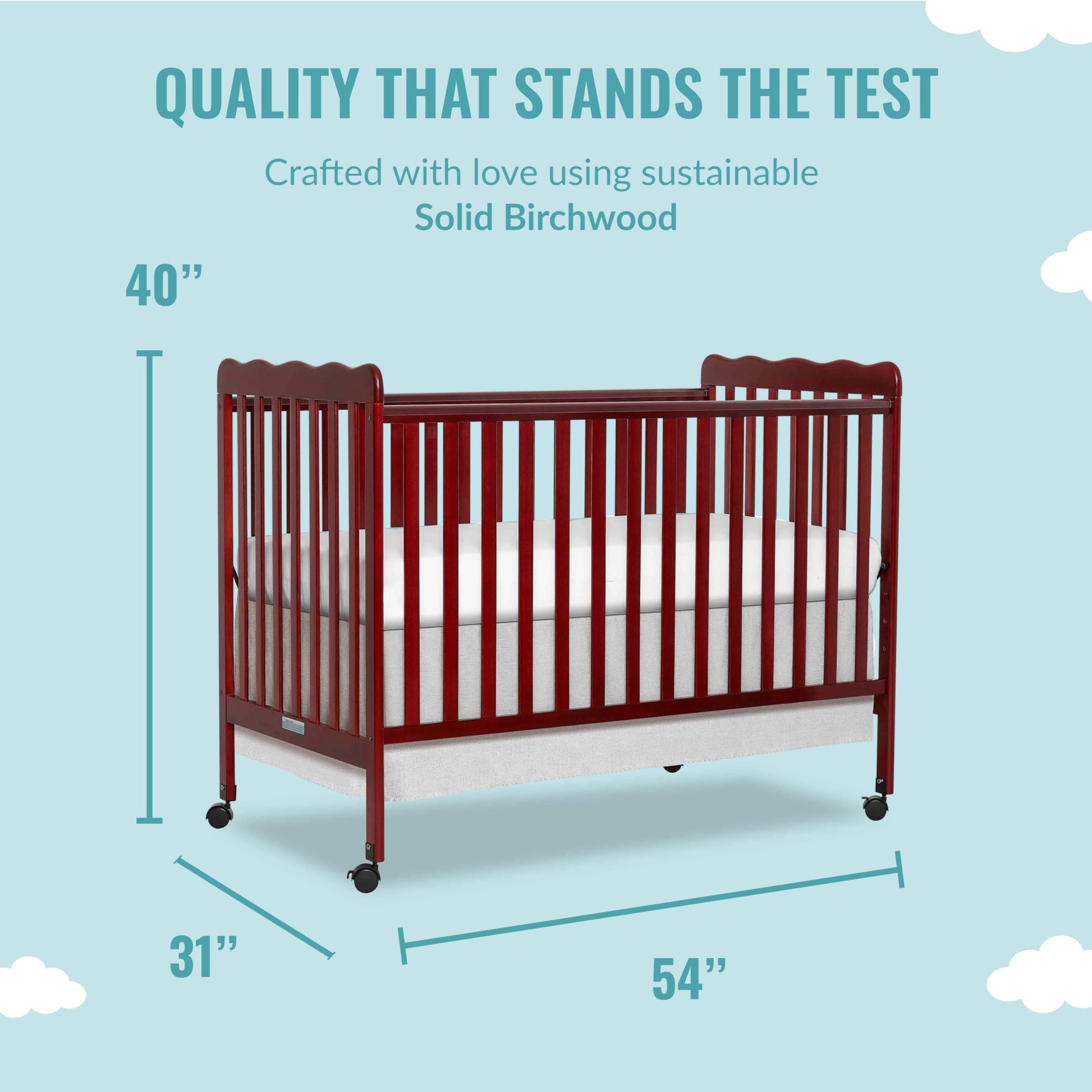 - SAFETY FIRST: Comes with a stationary (non-drop side) rail design for added security. Tested by 3rd party labs for lead/other toxic elements to meet/exceed CPSC/ASTM safety standards.
