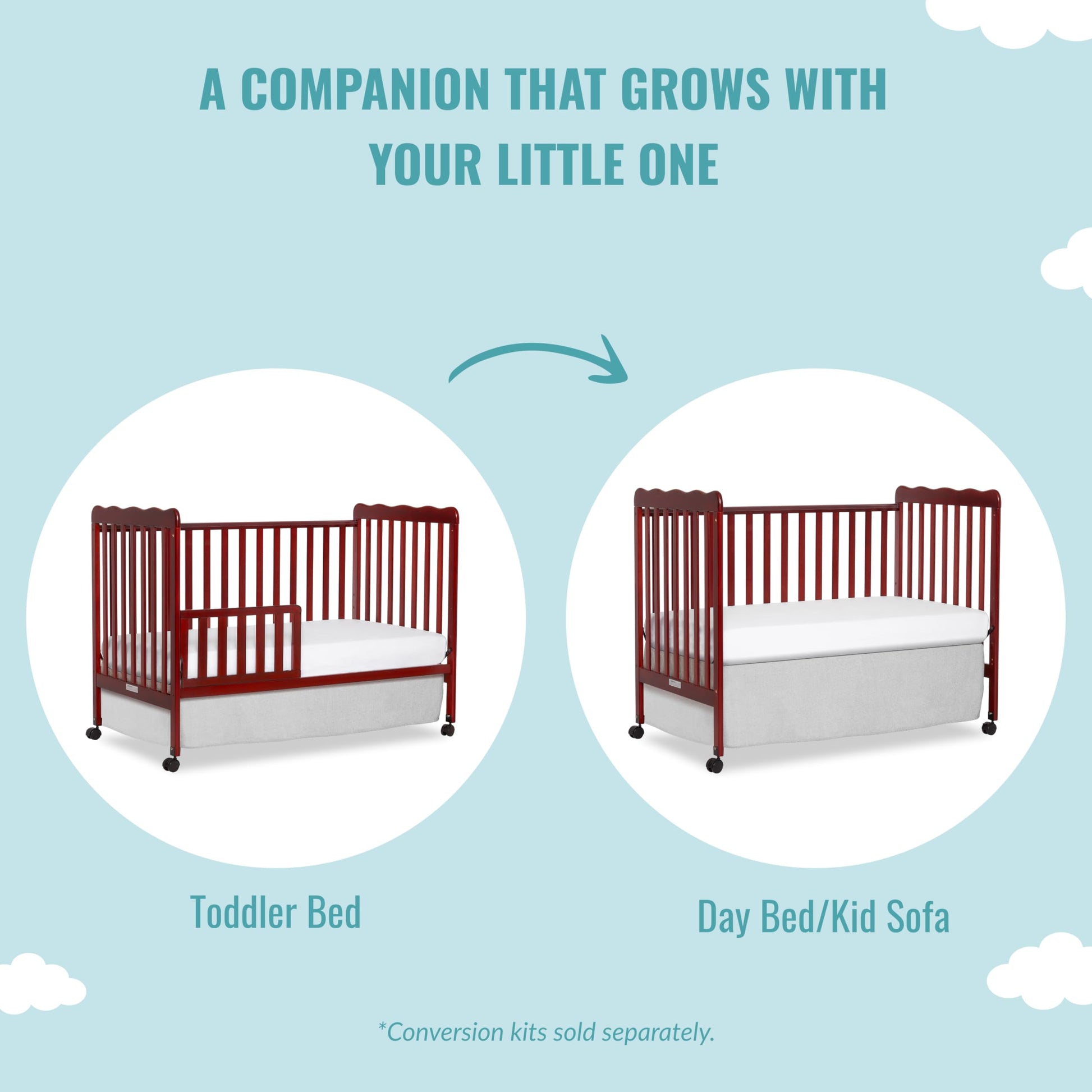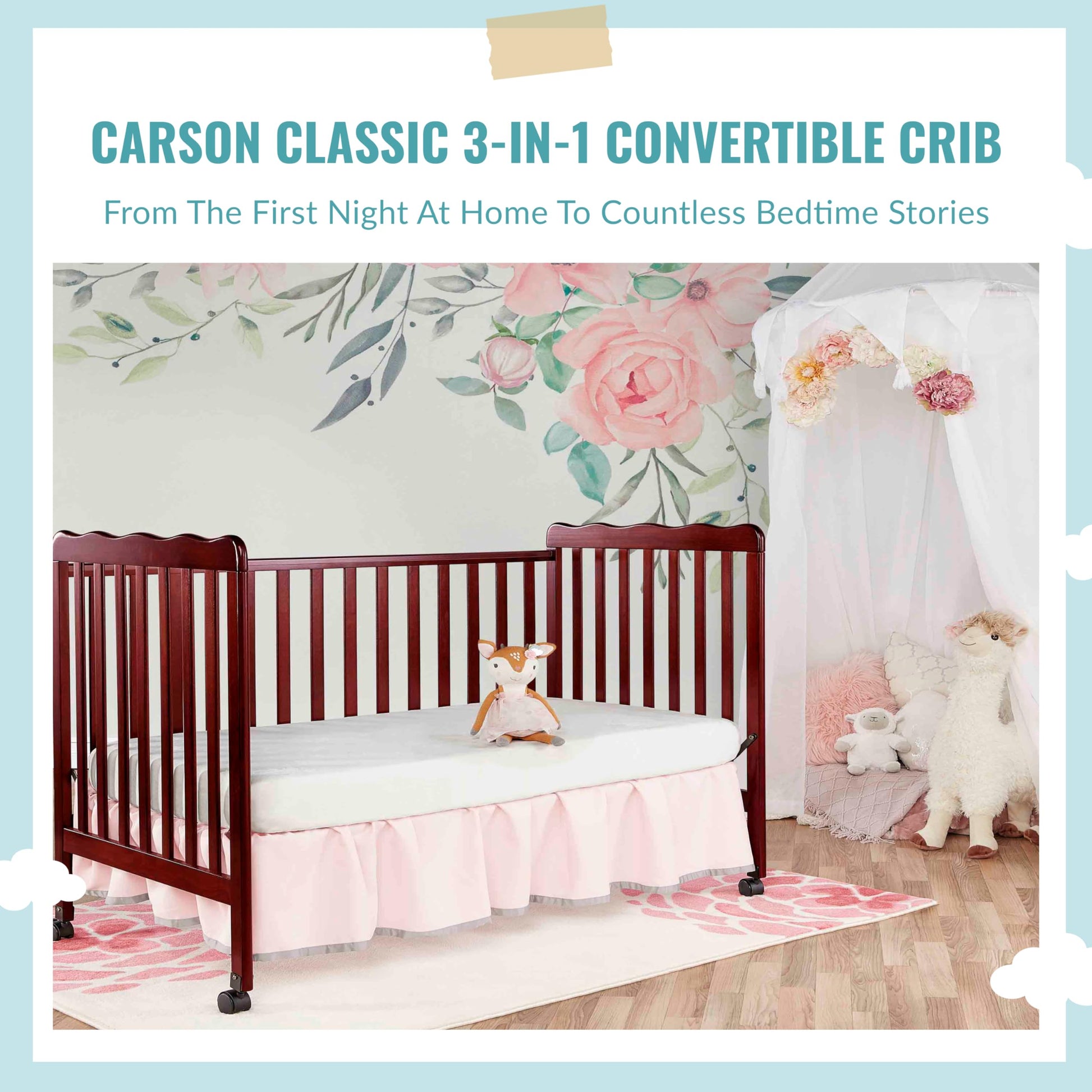 - 3-IN-1 CONVERTIBILITY: The Carson Classic keeps pace with your child’s changing needs! It converts from a crib into a toddler bed and daybed (conversion kit sold separately), perfect for those early growing years.