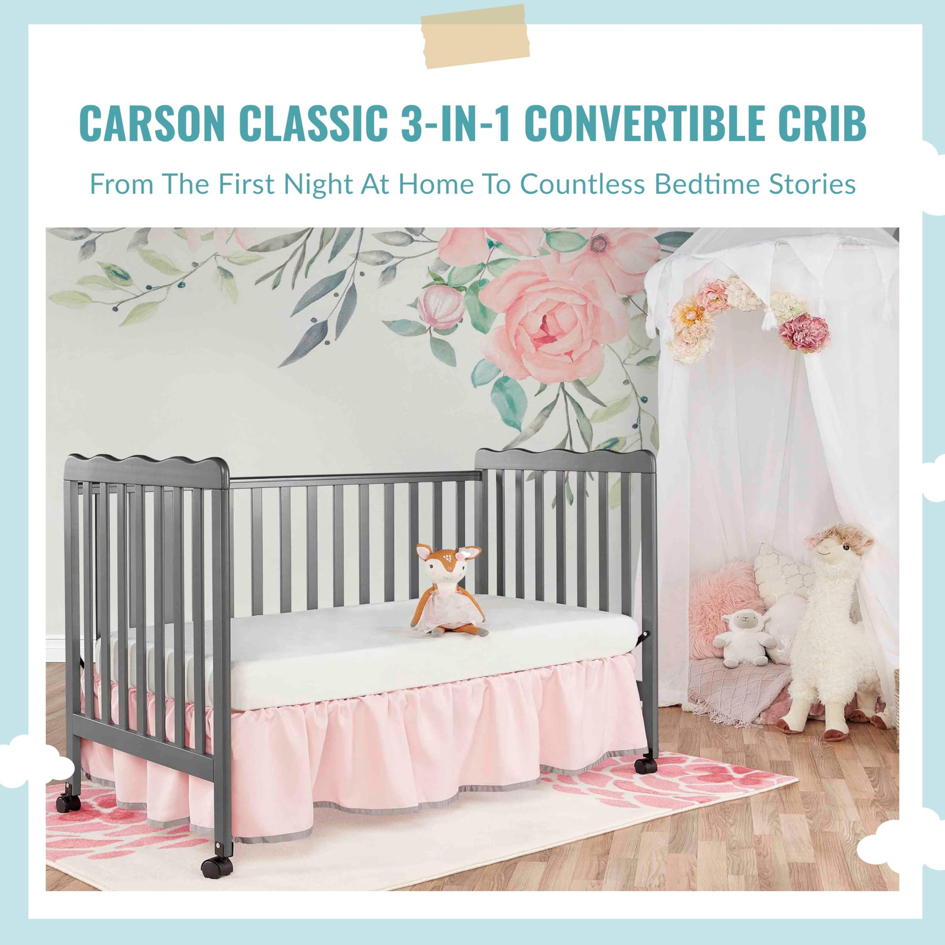- 3-IN-1 CONVERTIBILITY: The Carson Classic keeps pace with your child’s changing needs . It converts from a crib into a toddler bed and daybed (conversion kit sold separately), perfect for those early growing years.