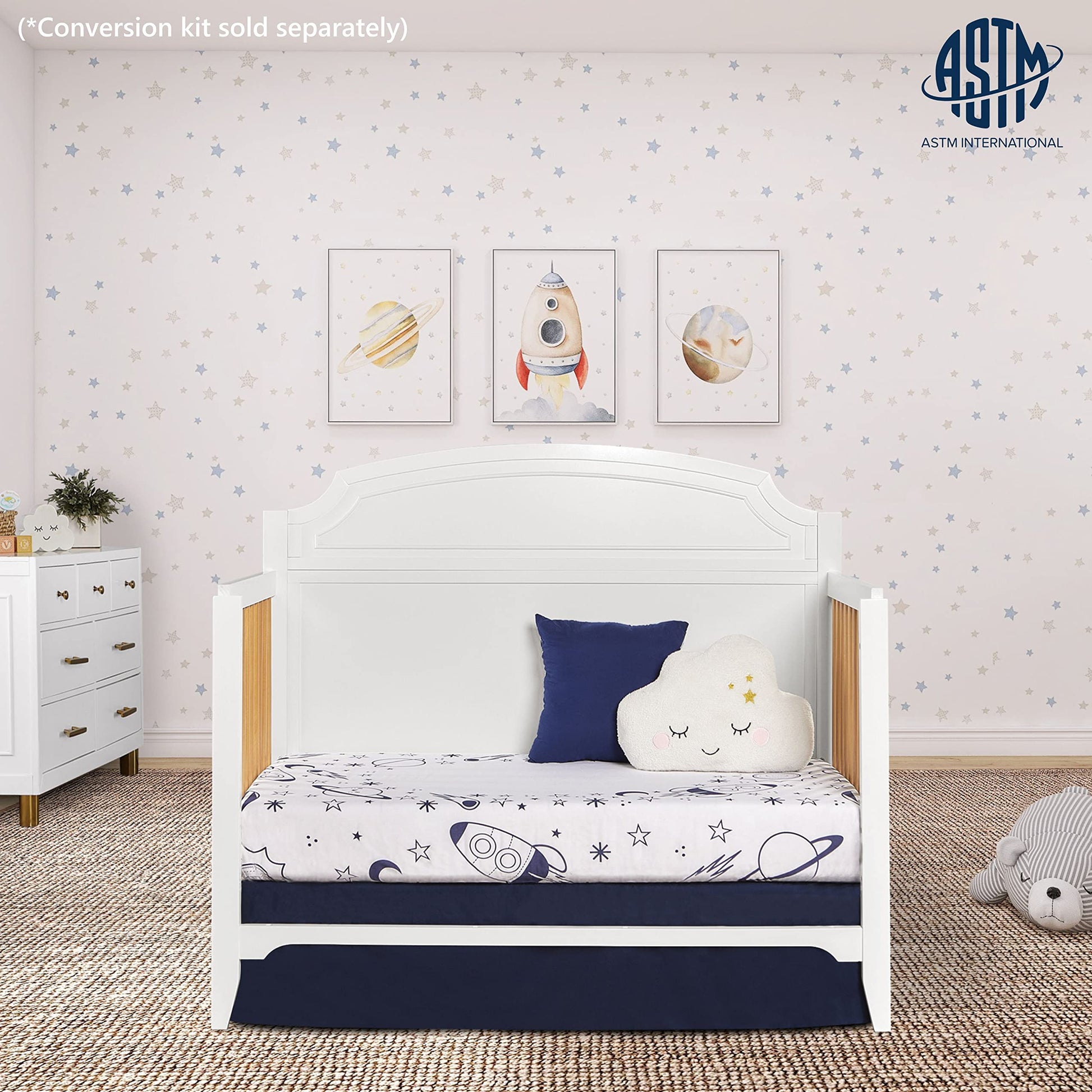 JPMA & Greenguard Gold Certified Milton 5-in-1 Convertible Crib Made with Sustainable New Zealand Pinewood in White and Natural, Non-Toxic Finish