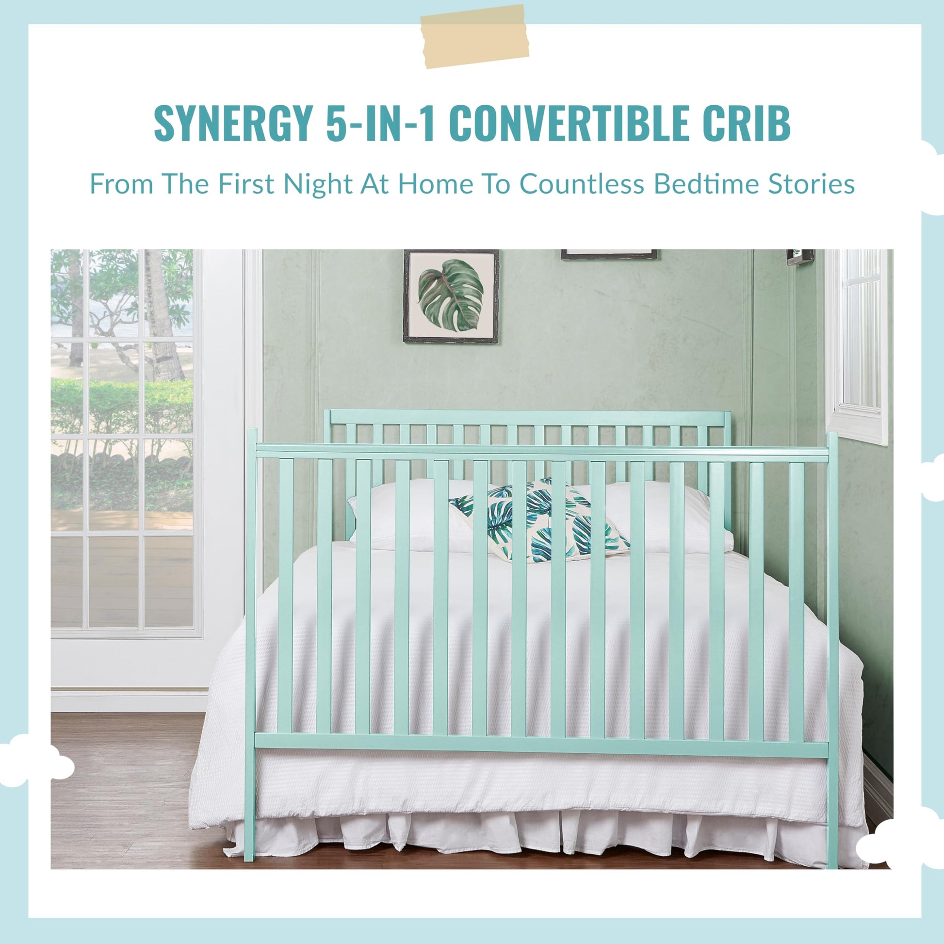 Synergy 5-in-1 Convertible Crib in Mint, Greenguard Gold Certified