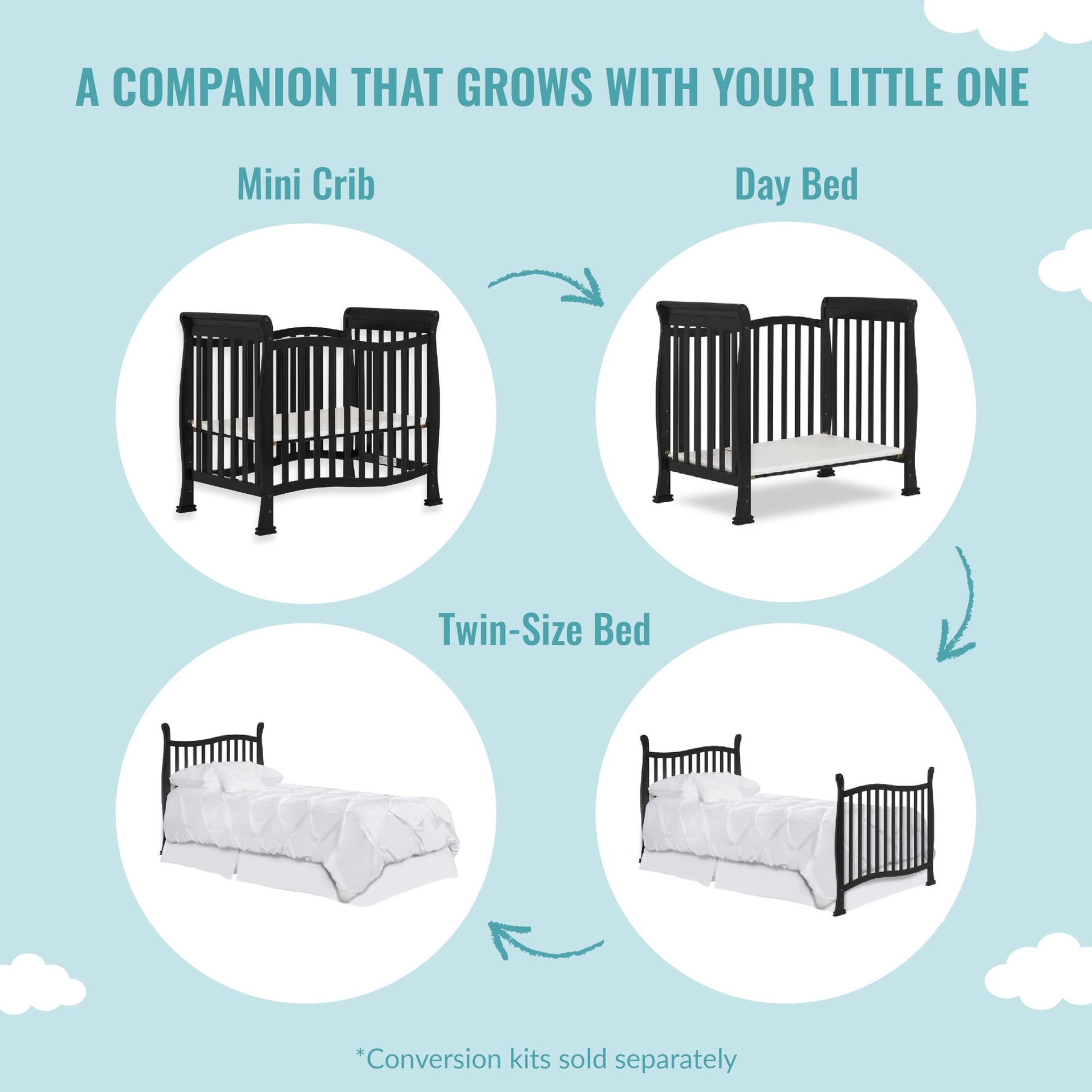 - The Violet/Piper 4-in-1 Convertible Mini Crib keeps pace with your growing child. Starting as a mini crib, you can convert it into a mini daybed and twin-size bed (bed rails sold separately)