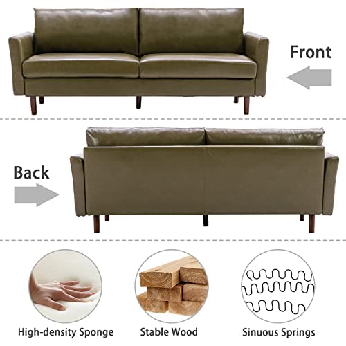 80'' Faux Leather Sofa Couch, Mid-Century Modern Sofa with Solid Wooden Frame