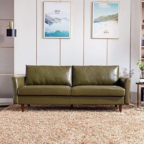 - Mid-Century Modern Design: Designed with multi-colored faux leather, smooth structure curve, clean & pure pattern, and slightly outward reaching armrests, this elegant sofa is evident in line with mid-century modern style. If you need to give your living room, apartment and lounge room a decor full of vintage and modern punch, our sofa can bring you the perfect combination of classic and fashion in your compact or spacious space.