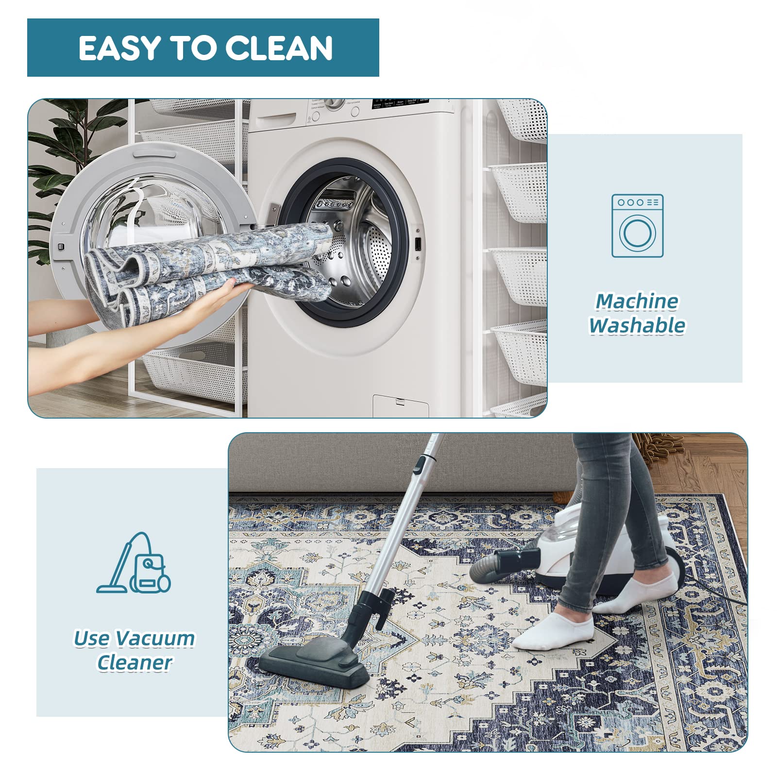 8x10 Area Rugs - Stain Resistant Washable Rug Distressed Boho Rugs