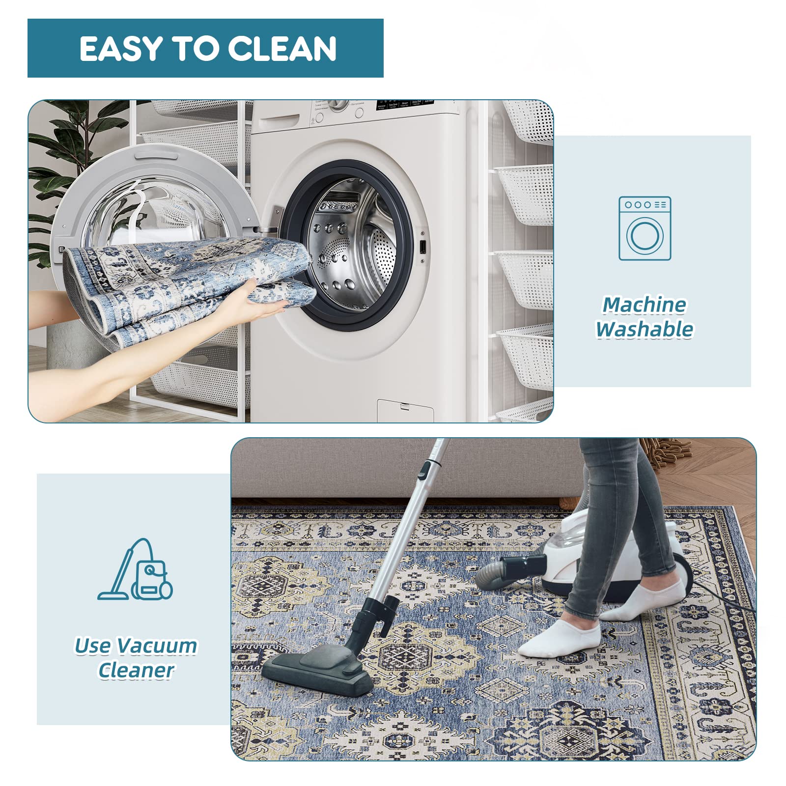 Boho Runner Rug-2x8 Washable Distressed Hallway Runner Oriental