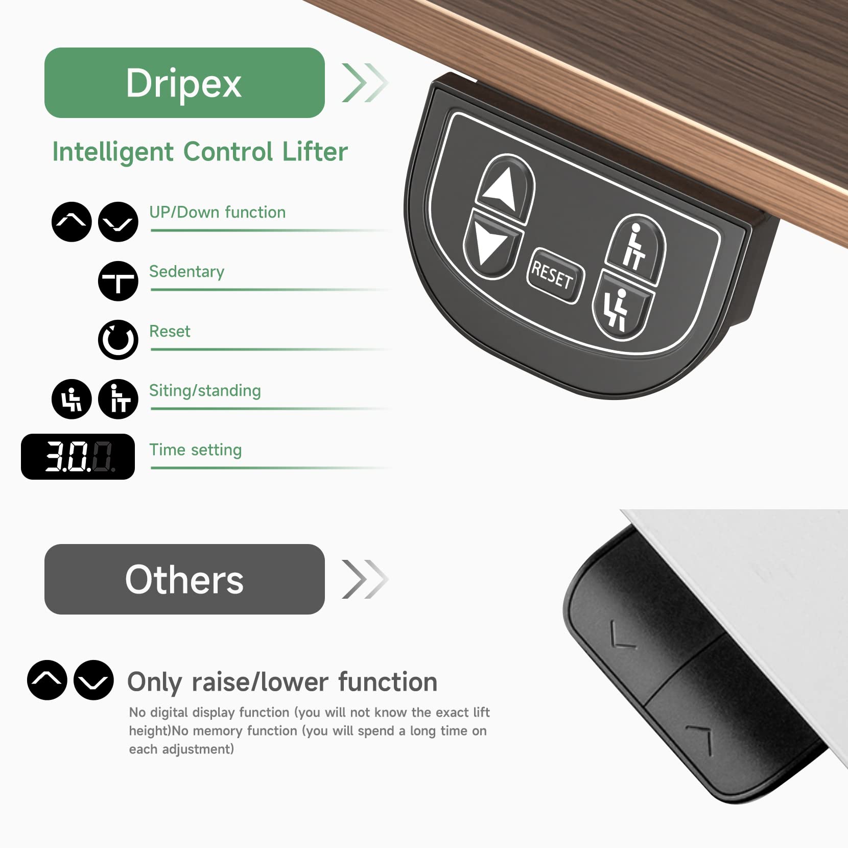 - Electric Height Adjustable: Sitting for long periods causes physical stress. The Dripex electric height adjustable desk Height adjustable standing desk can adjust the height between 28''-46'' according to your needs and its ergonomic design delivers a peaceful experience to you wherever at home or office.43-inch desktop is a complete piece of desktop