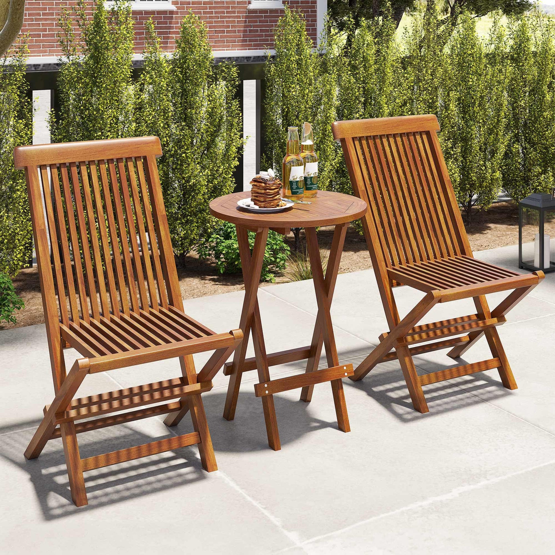 3 Pieces Patio Bistro Set Teak Wood Bistro Table and Chairs Set of 2, Outdoor Conversation