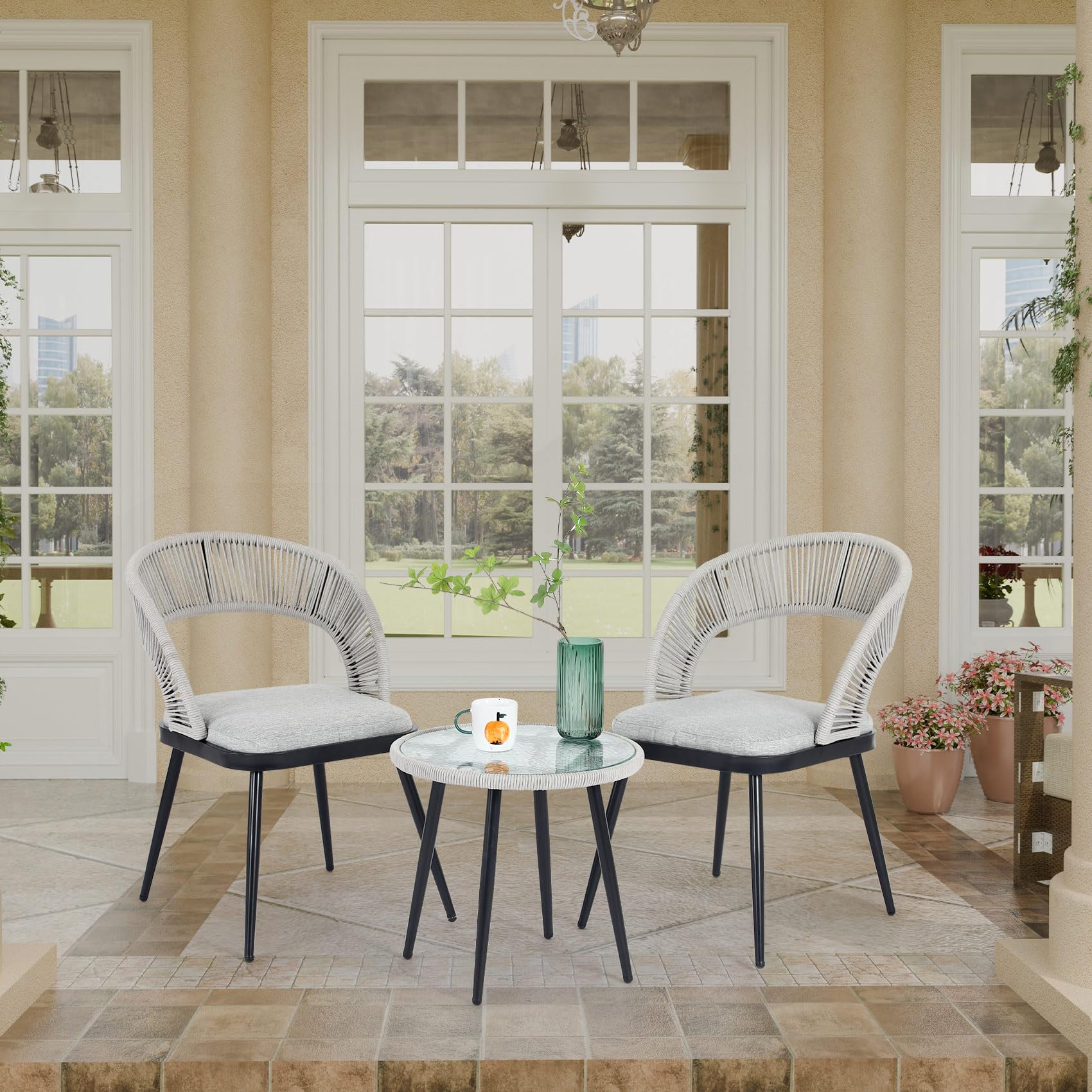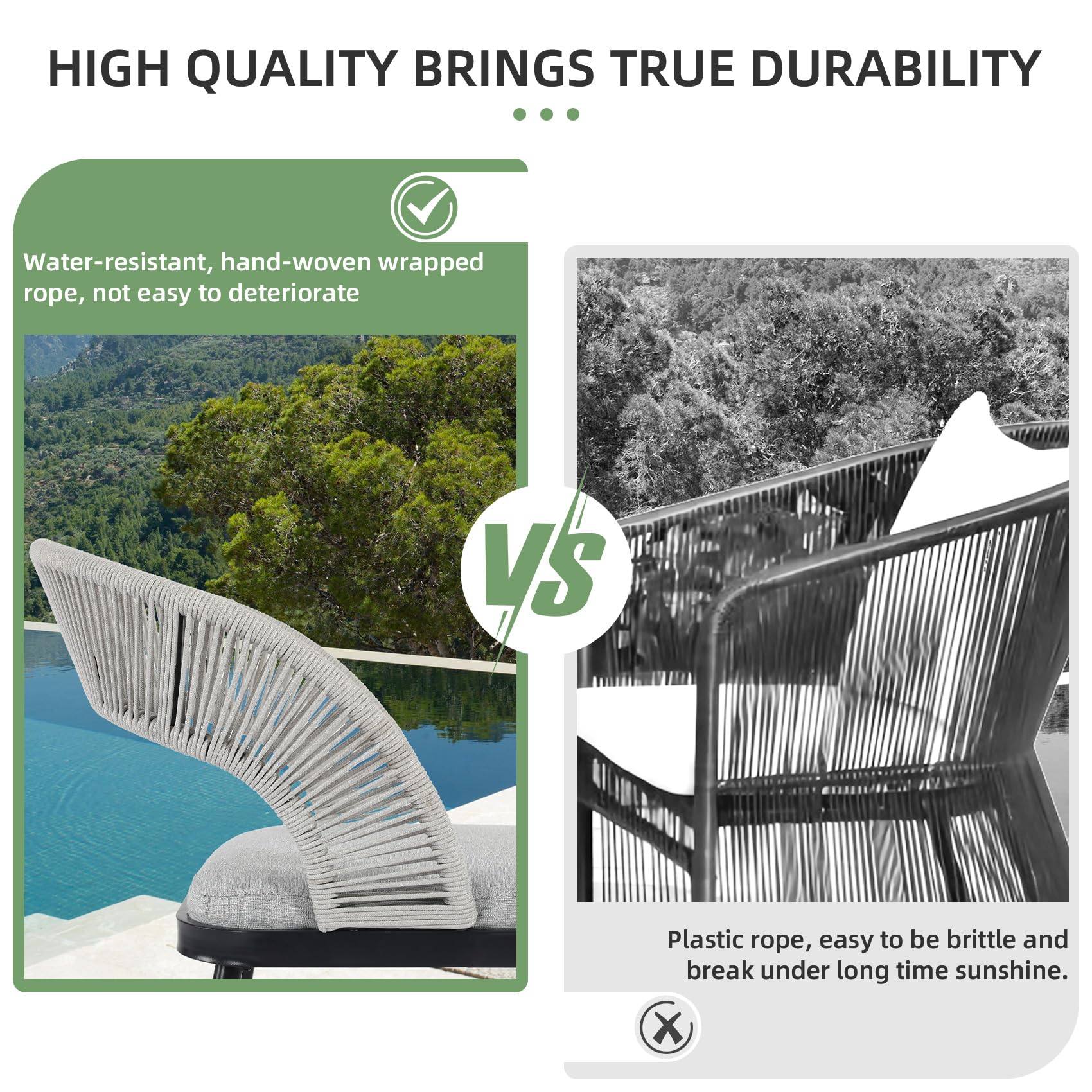 - HAND-WRAPPED ROPE: The balcony chair's wrapped rope is made of a material specially designed for outdoor furniture, which is quick-drying, weather-resistant, and colorfast. Compared to the PE material of common patio chairs can adhere to a longer period without fading and breaking.