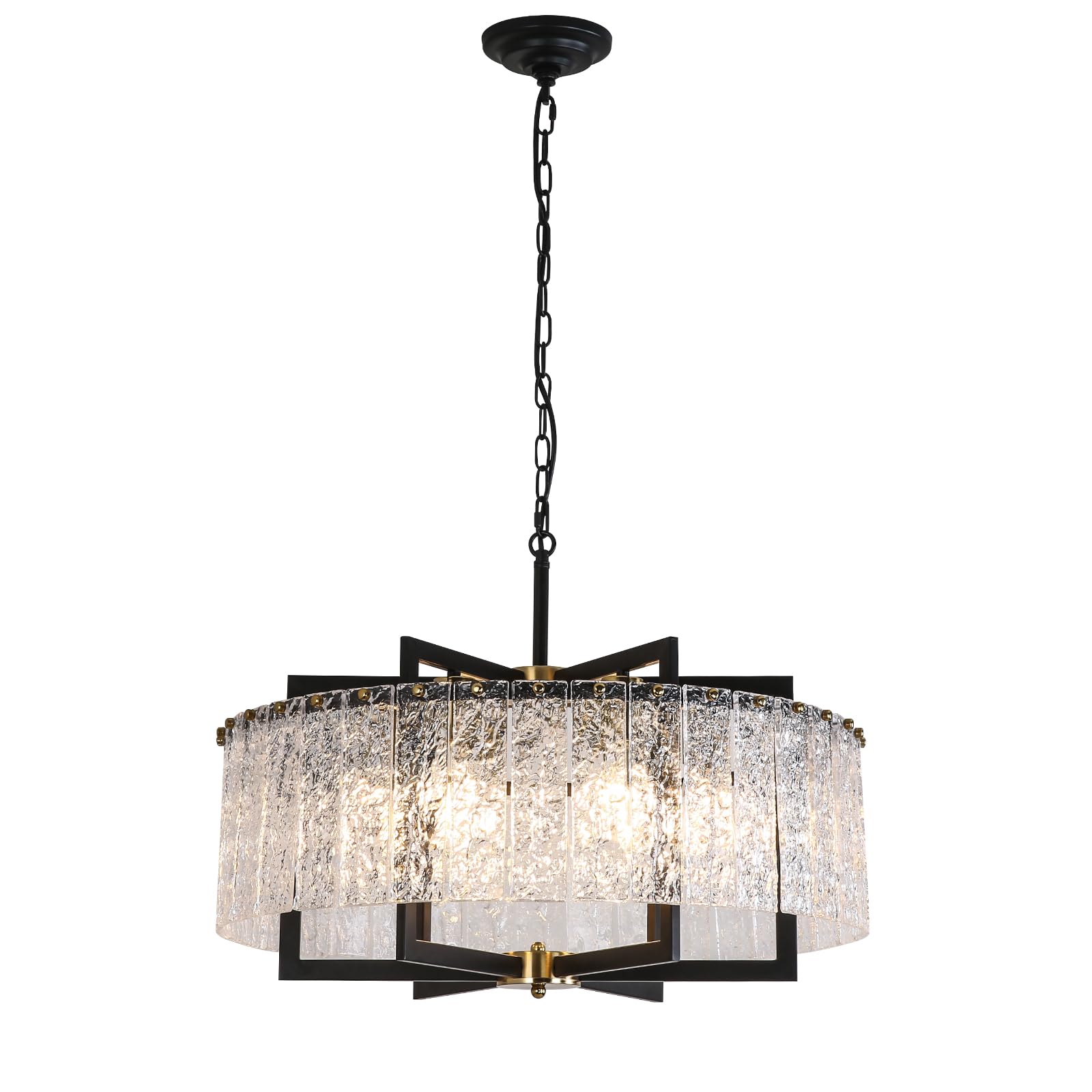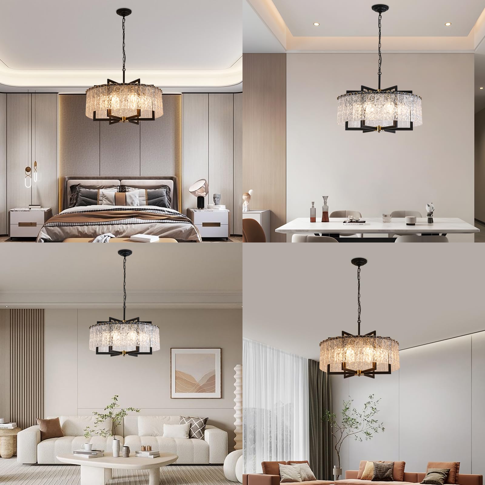 Modern Black Chandeliers,23.6" Crystal Glass Pendant Ceiling Light Fixtures