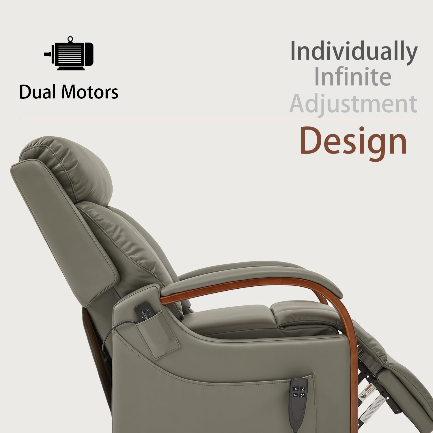 - 2-MOTOR and TRUE INFINITE POSITIONING - Most lift chairs equip only 1 motor. That means that the footrest and backrest move in lock-step with no way to independently adjust them. It’s a one-size-fits-all system that doesn’t work well for most people. Dynox lift chairs feature 2 separate motors, allowing the backrest and footrest to be independently controlled. It allows the chair to fit you rather than you being forced to fit the chair. True personalized adjustment.