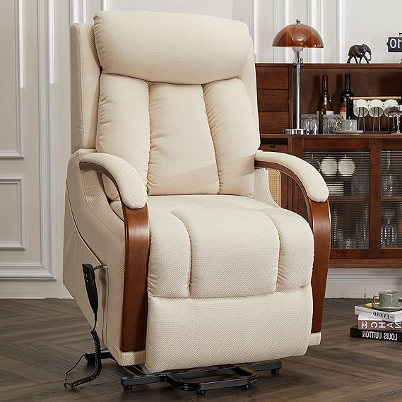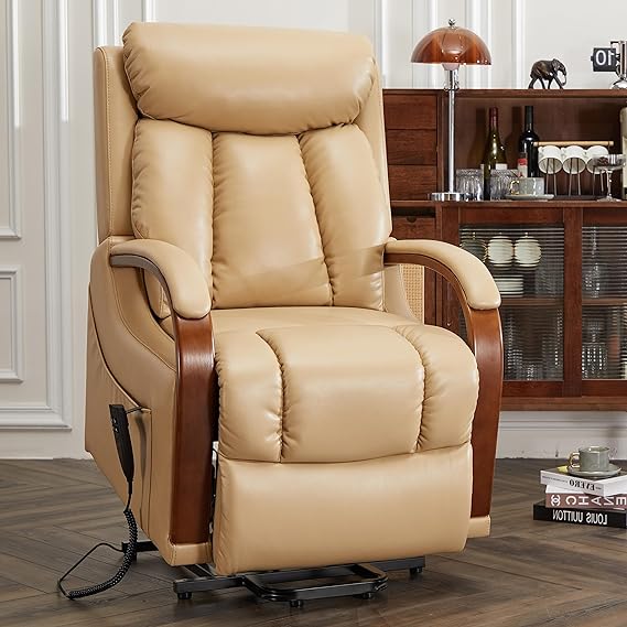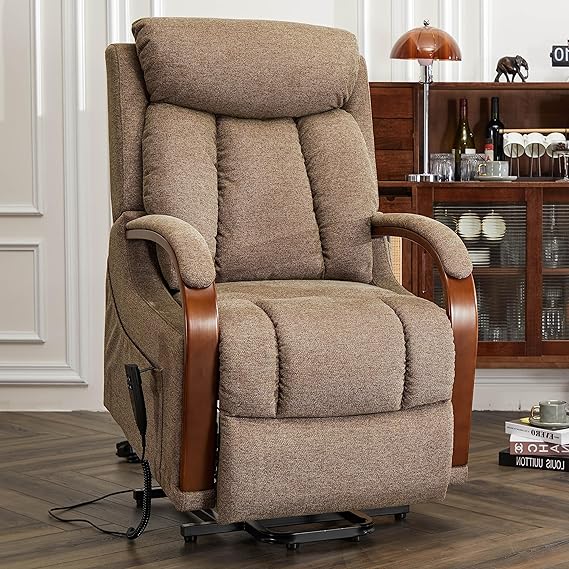- WOODEN A RMREST DESIGN - This lift chair equips elegant wooden armrest with soft leather or fabric padded. A perfect combination of comfort and fashion. It can be well integrated into your living room, bedroom, study and various decoration styles.