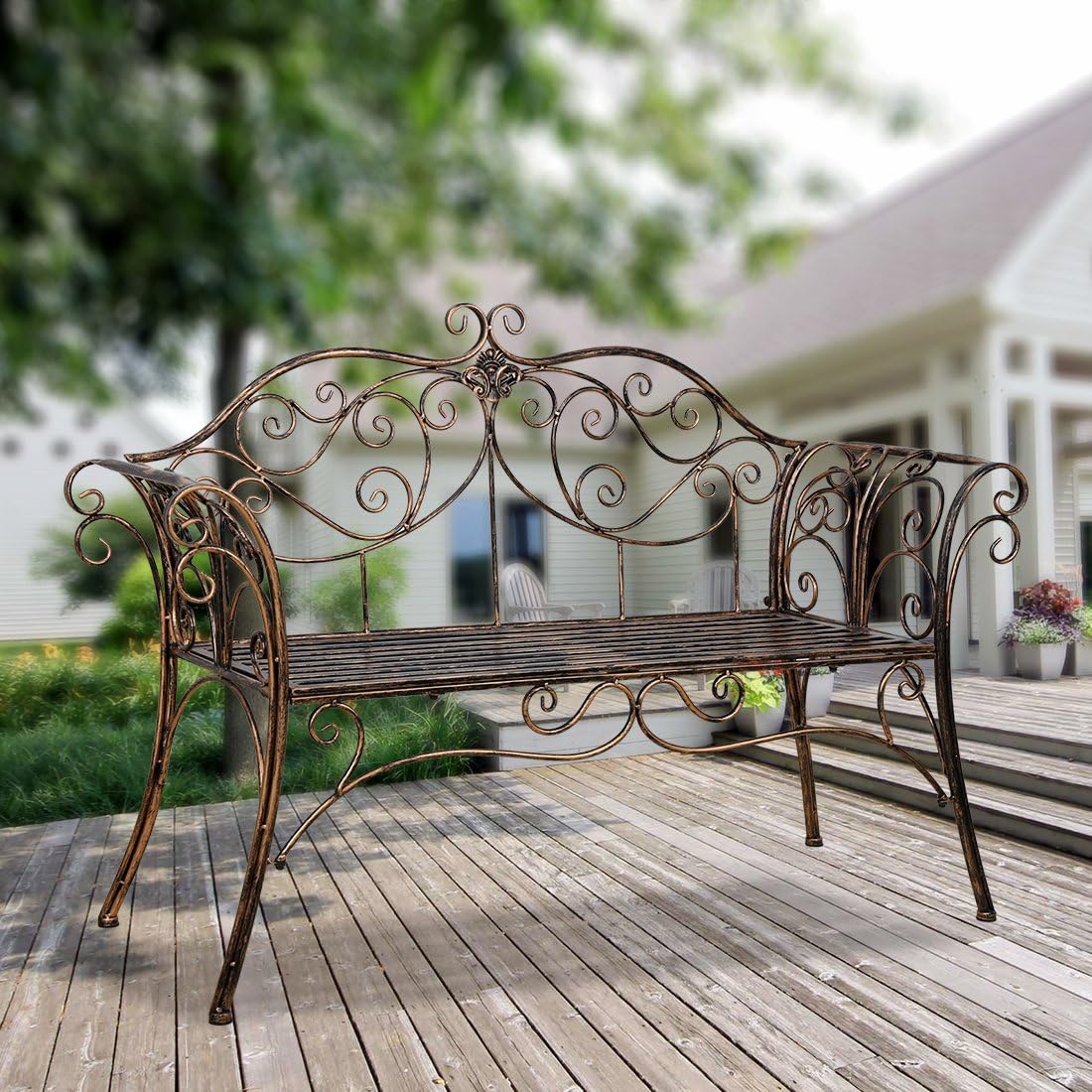 Bronze Metal Garden Bench Chair 2 Seater for Garden, Yard, Patio, Porch and Sunroom