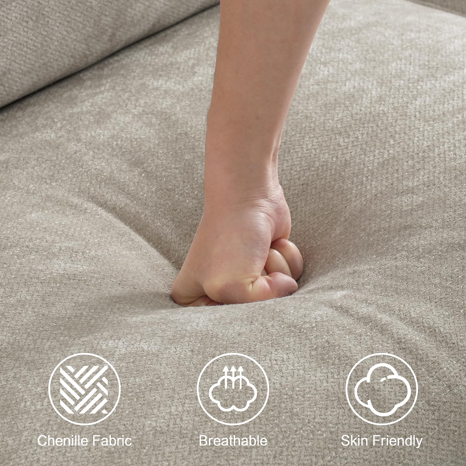 - BREATH CHENILLE: The deep-seated sofa is made of chenille, which is not only luxuriously soft, but also provides a feeling of tranquility and comfort, allowing you to immerse yourself in a sense of endless relaxation.The unique texture and weave of the fabric provides the ultimate in relaxation, as well as excellent breathability, anti-wrinkle properties, and its resistance to wear and tear ensures that the sofa stays as good as new for a long time.