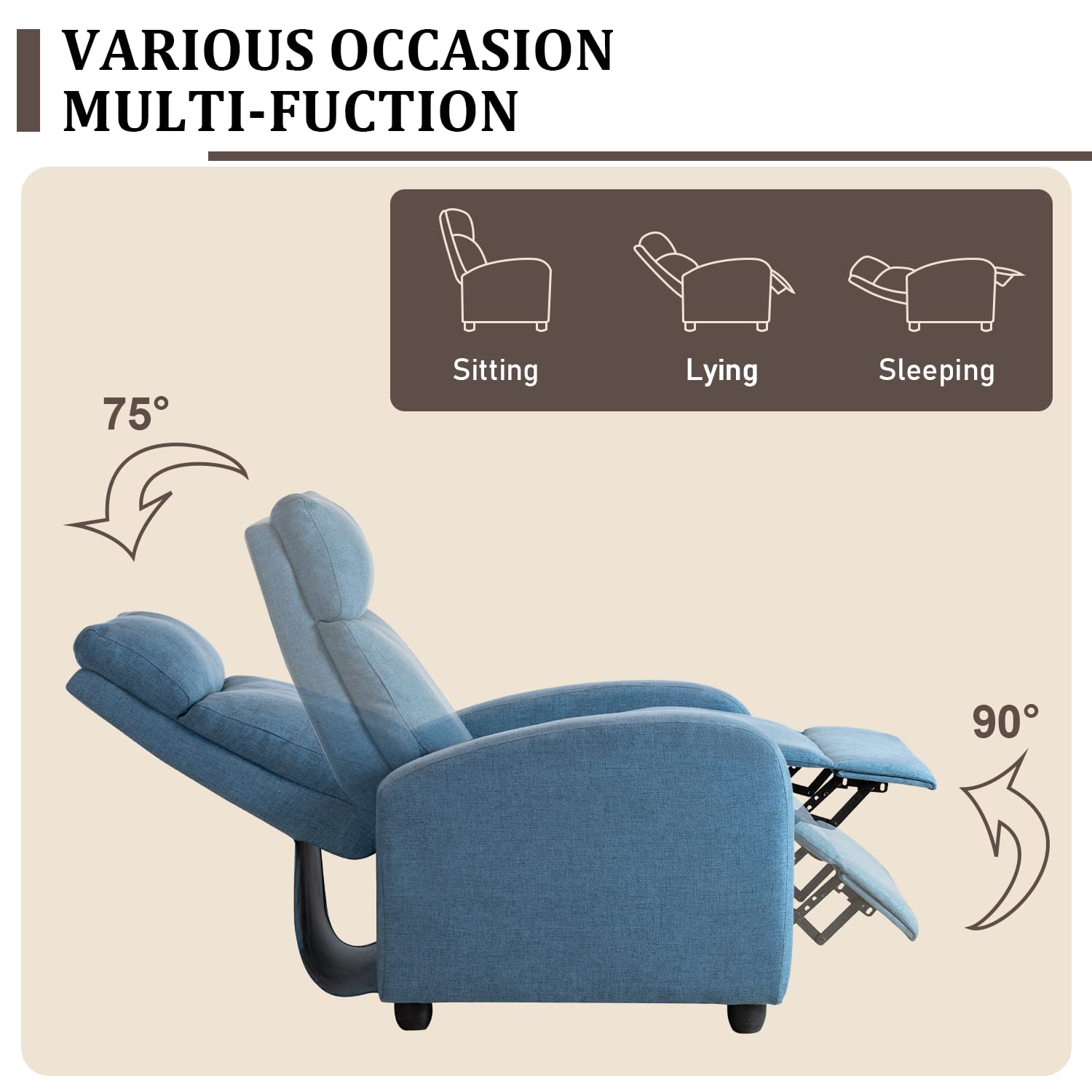 - Multi-Use Recliner: Designed for living rooms, bedrooms, or home theaters, with a reclining range from 90° to 165° for sitting or lying down.