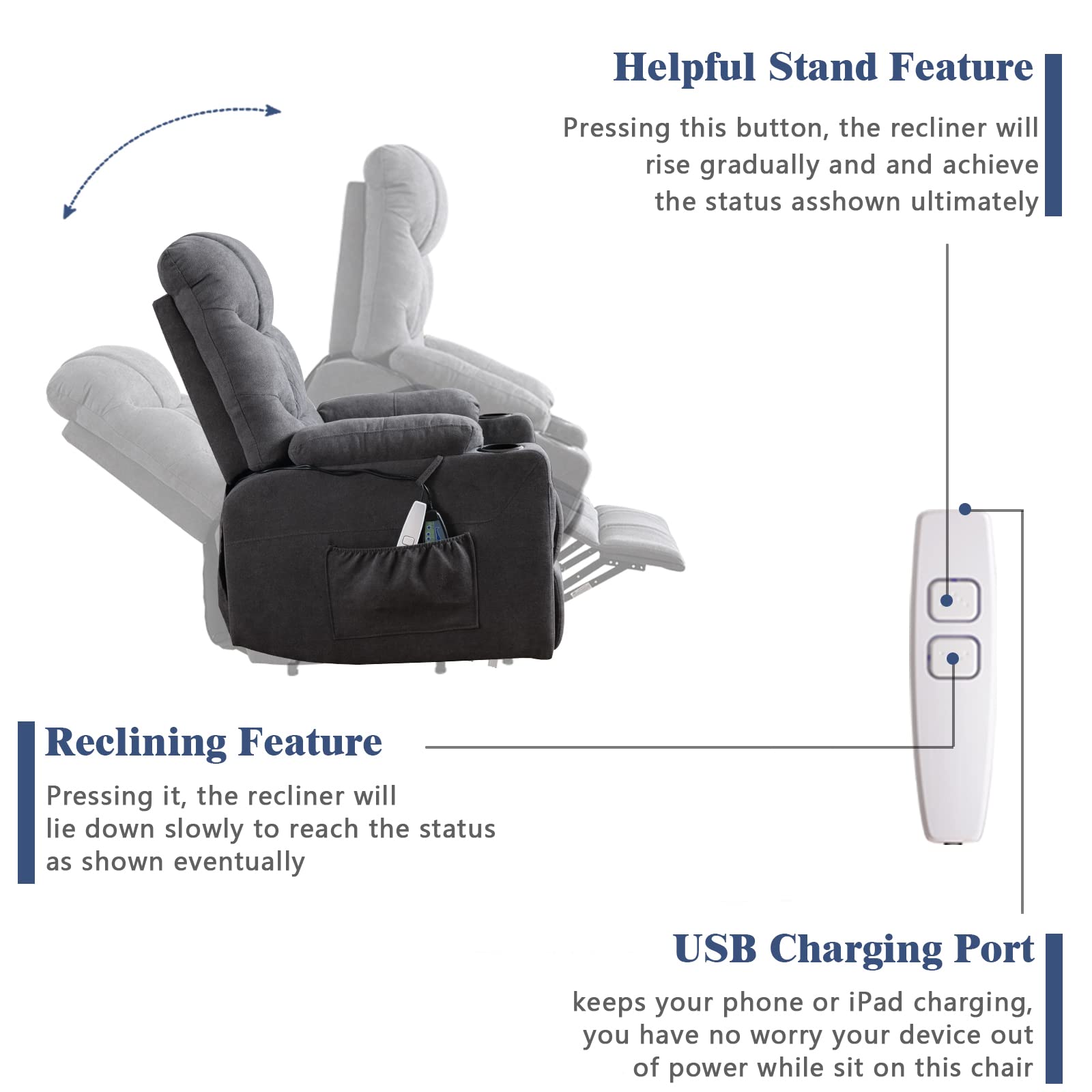 EaseRise Power Lift Recliner with Massage, Heat & USB
