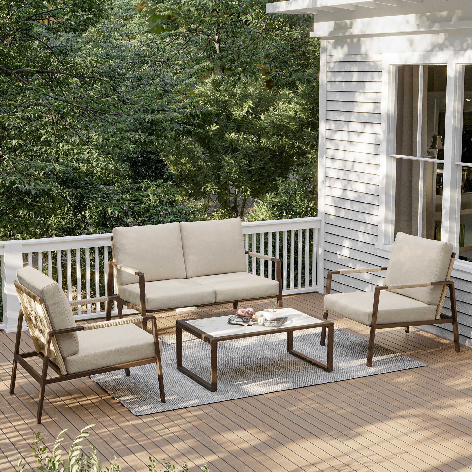 4-Piece Patio Conversation Set, Waterproof Outdoor Furniture Set