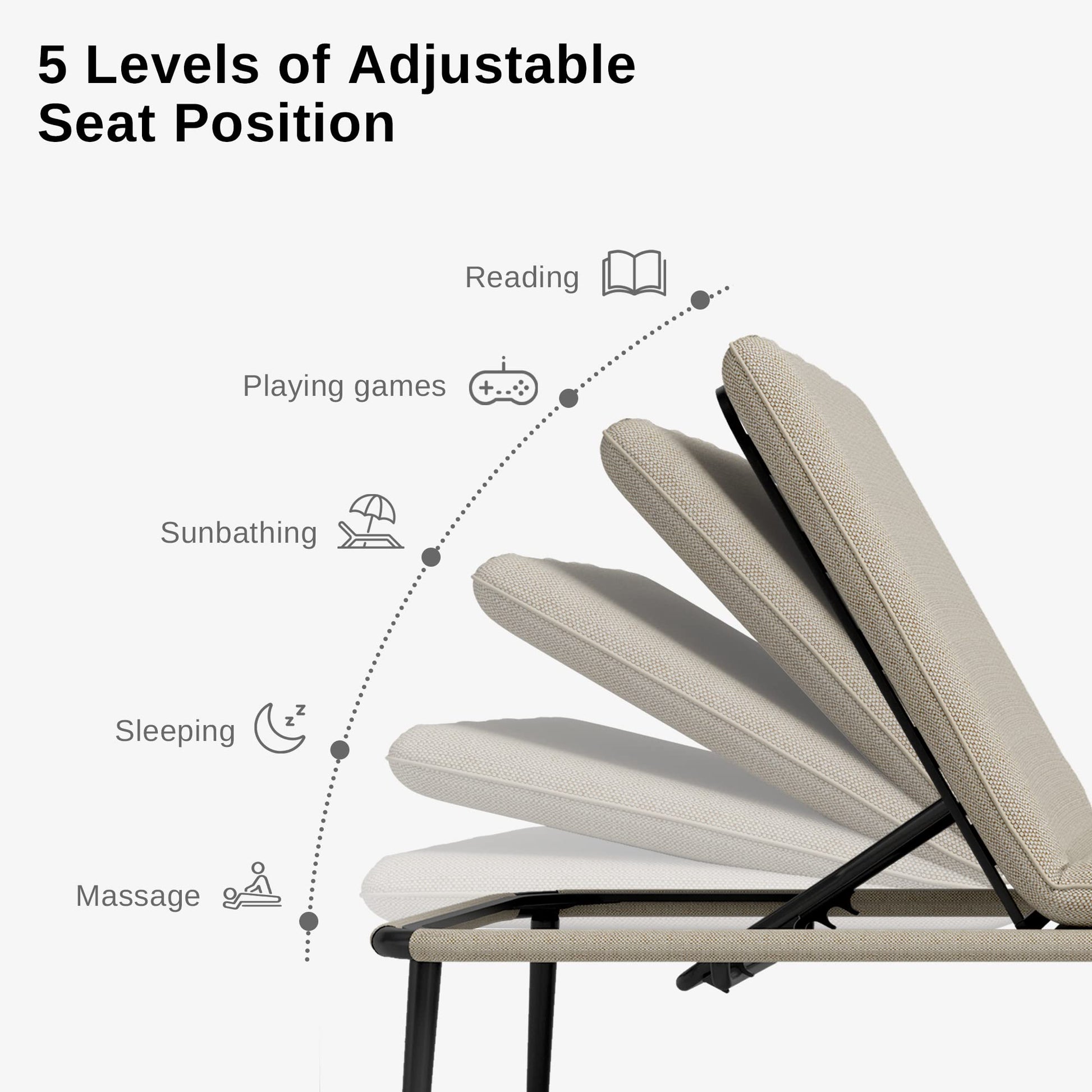 - 5 Adjustable Reclining Positions: This patio lounge chair allows you to adjust the angle of the backrest according to your needs, providing a more comfortable experience. Additionally, it has flexible bottom foot adjustments, which can adapt to uneven ground conditions and ensure that you can enjoy a comfortable experience on any terrain.