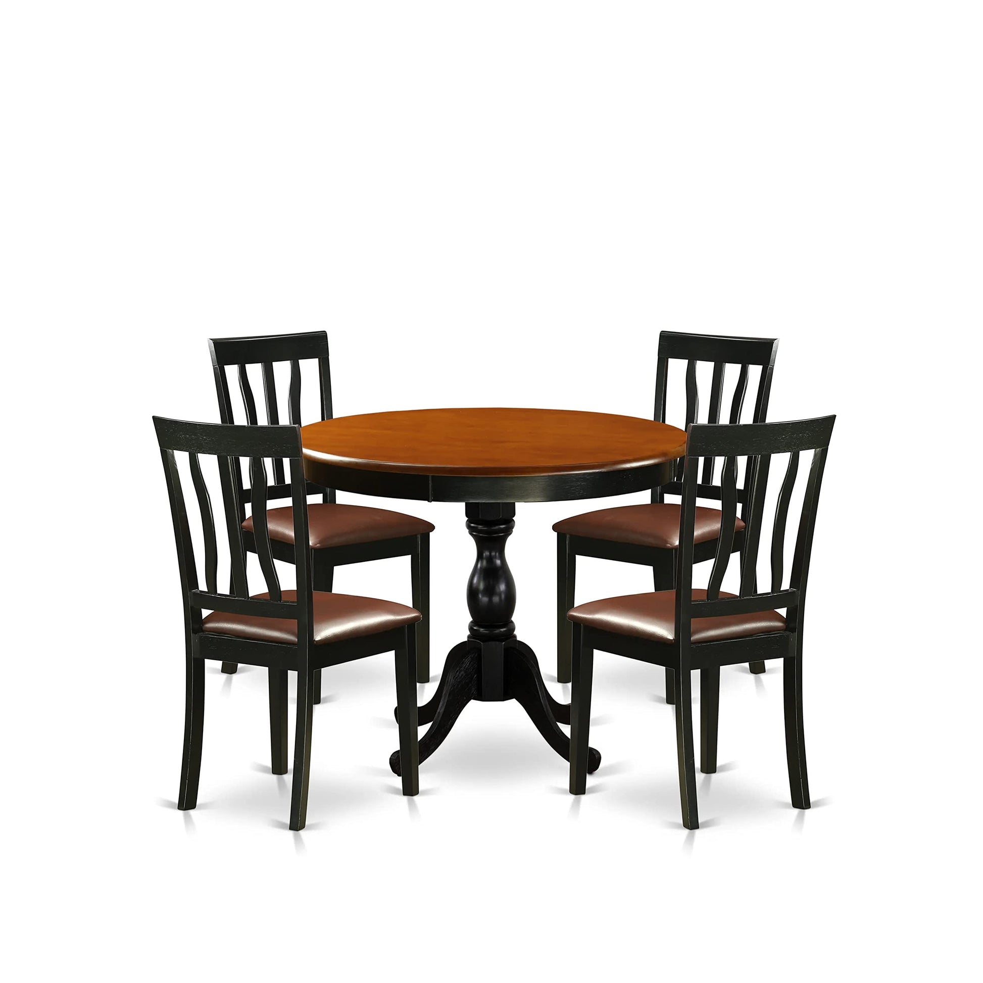 AMAN5-BCH-LC 5 Piece Set for 4 includes a Round Table with Pedestal and 4 Faux Leather Kitchen Dining Chairs, 36x36 Inch