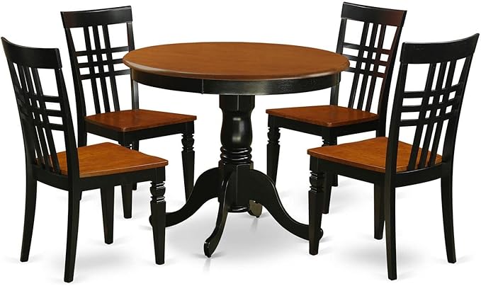 - WOOD TABLE SET FINISH: This dining table features a Mahogany round table top and black robust wooden pedestal legs. The dining chairs are expertly fashioned from premium-grade black finish wood, resulting in a refined scheme that adds a touch of luxury to your kitchen. This kitchen set is the perfect choice for those seeking to add a touch of elegance and refinement to their home which produces the best choice quality Combination to give a luxurious gaze to your kitchen.