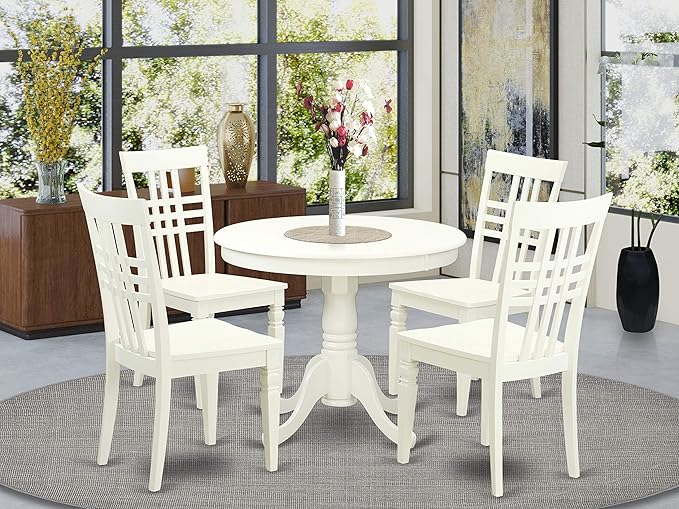 ANLG3-BCH-W 3 Piece Room Set Contains a Round Kitchen Table with Pedestal and 2 Dining Chairs,