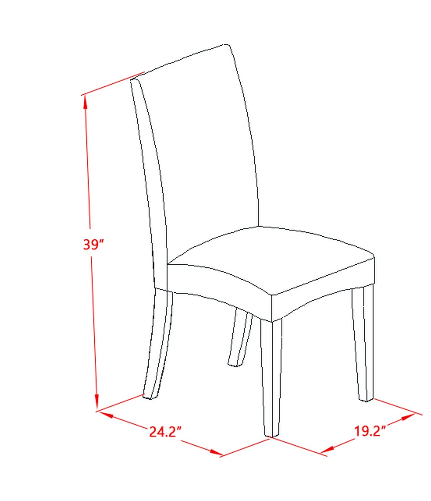 - ITEM DIMENSIONS: The Dimensions of a Fabulous Dining Chairs are: Length: 24.2; Width: 19.2; Height: 39. Dimensions of the Dining Table are: Length: 36; Width: 36; Height: 29.5.