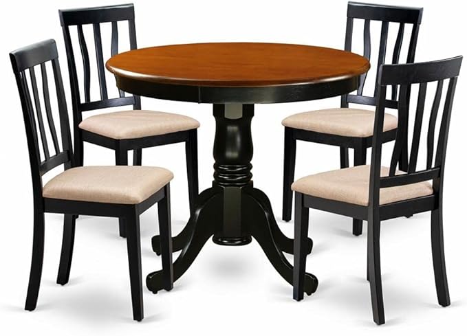 - DINING CHAIR SEAT MATERIAL: The round tabletop and pedestal legs of this kitchen table set make it a versatile choice for any dining or kitchen area. The wooden chairs, featuring a comfortable Linen Fabric seat, provide an ideal seating experience with ample support. These stunning dining chairs not only enhance the aesthetics of any dining area, but also ensure maximum comfort for your family during meal times.