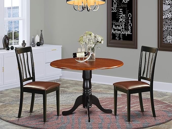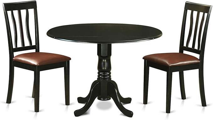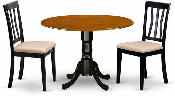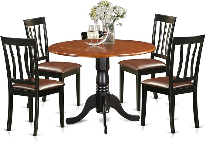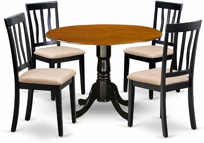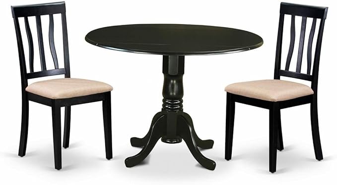 - Round dining table has a Black Color Table Top and Black Pedestal Legs. Our kitchen chairs are Black 4 Legs and Linen Fabric Seat. Our modern dining chairs and modern kitchen table will match any room décor due to its conventional design.