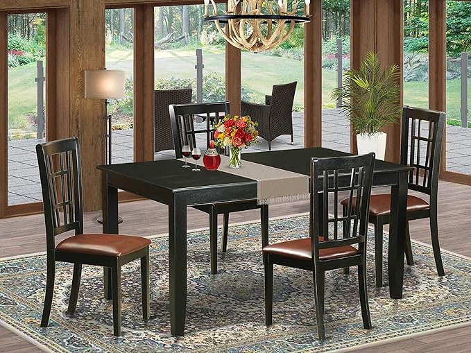 DUNI5-BLK-LC Dudley 5 Piece Dinette Set for 4 Includes a Rectangle Room