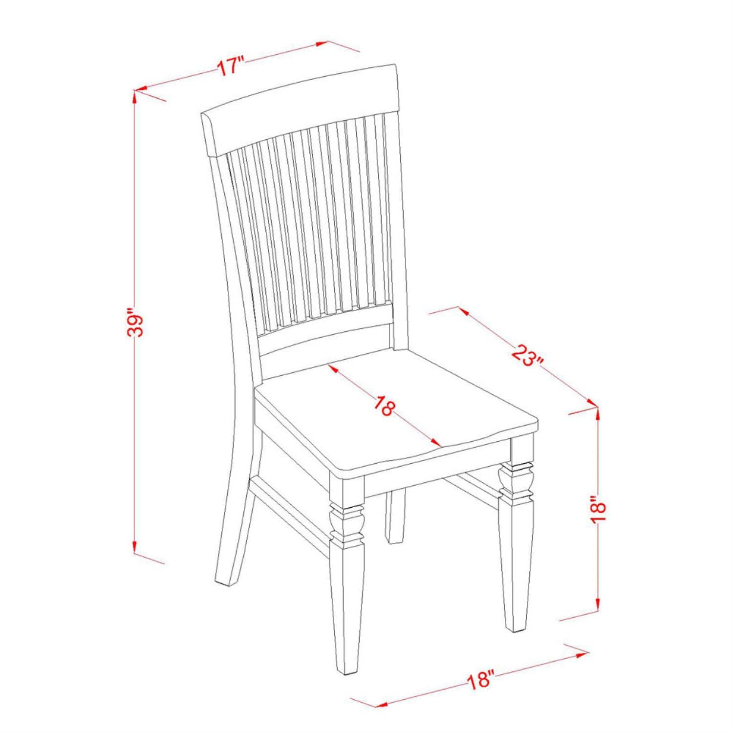 - The Dining Table Dimension: Length: 42; Width: 42; Height: 30. The Dimension of the Kitchen Chair: Length: 23; Width: 18; Height: 39.