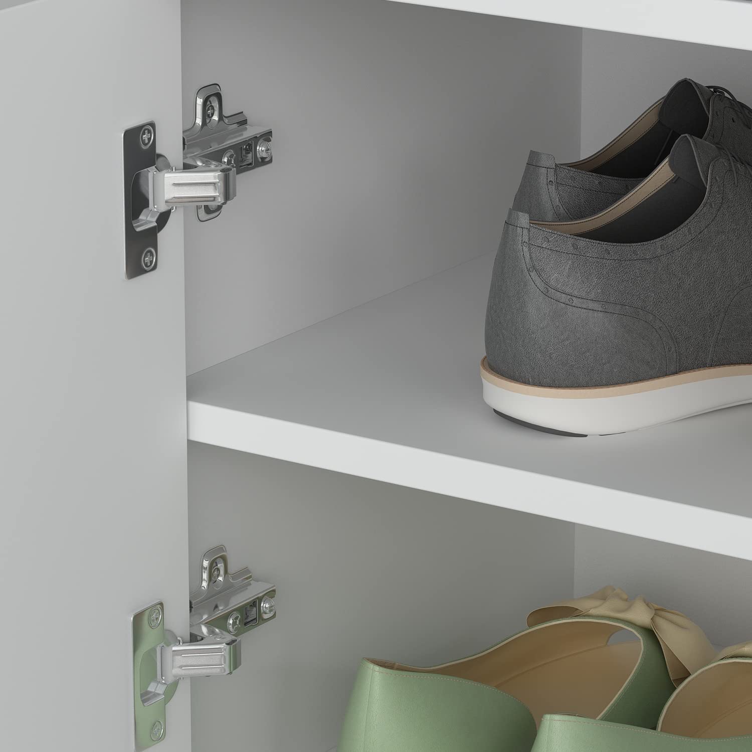 - This white shoe bench with doors is made of durable particle board, the coated surface is smooth, moisture-resistant and easy cleaning. The metal hinges are soft-close hinges, which can be used for a long time