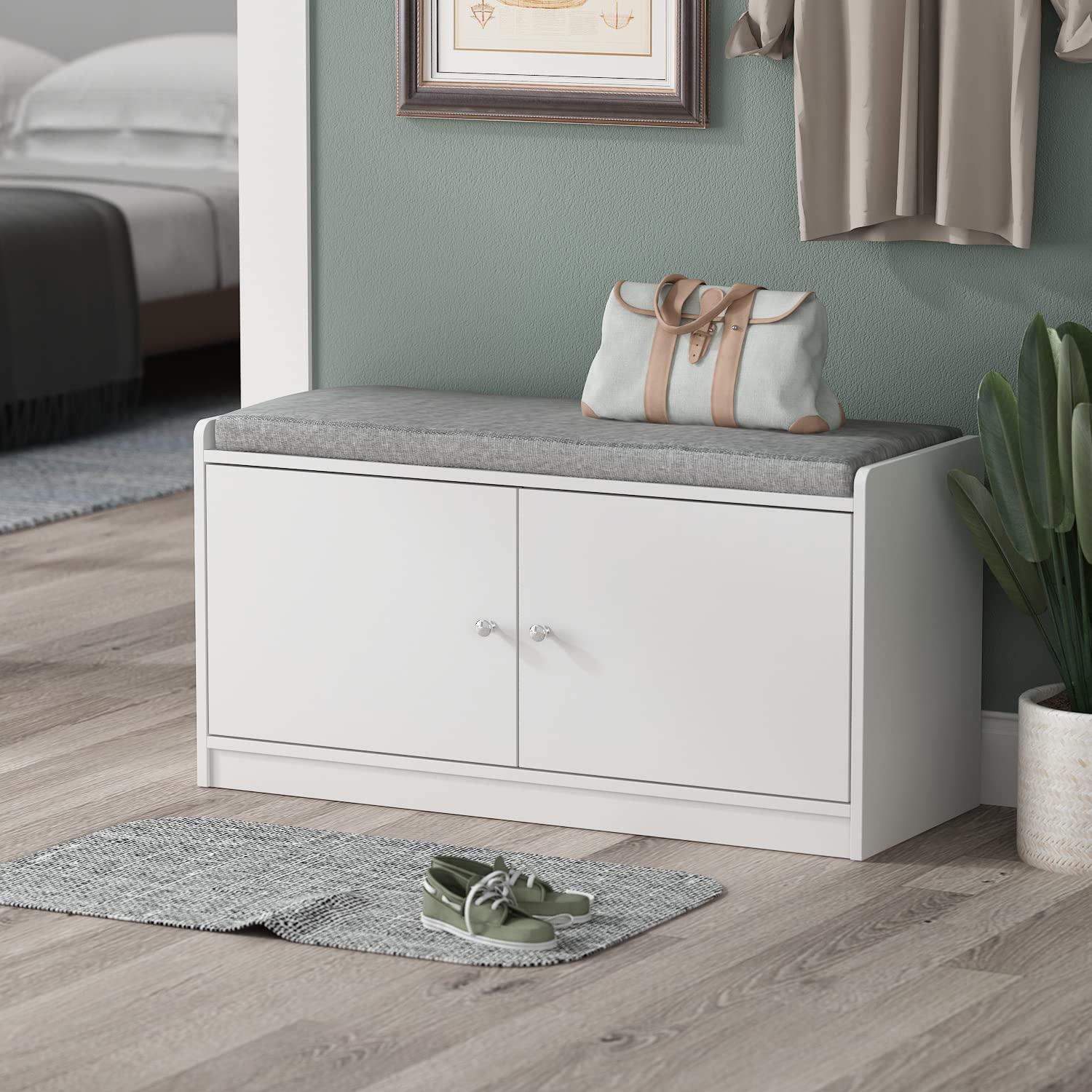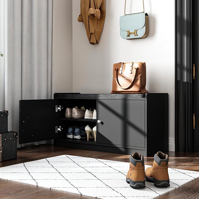 - The multipurpose storage bench with cushioned seat can be used as entryway shoe bench and storage bench in bedroom, also it works great in hallway, office, living room, mudroom, dorm, etc