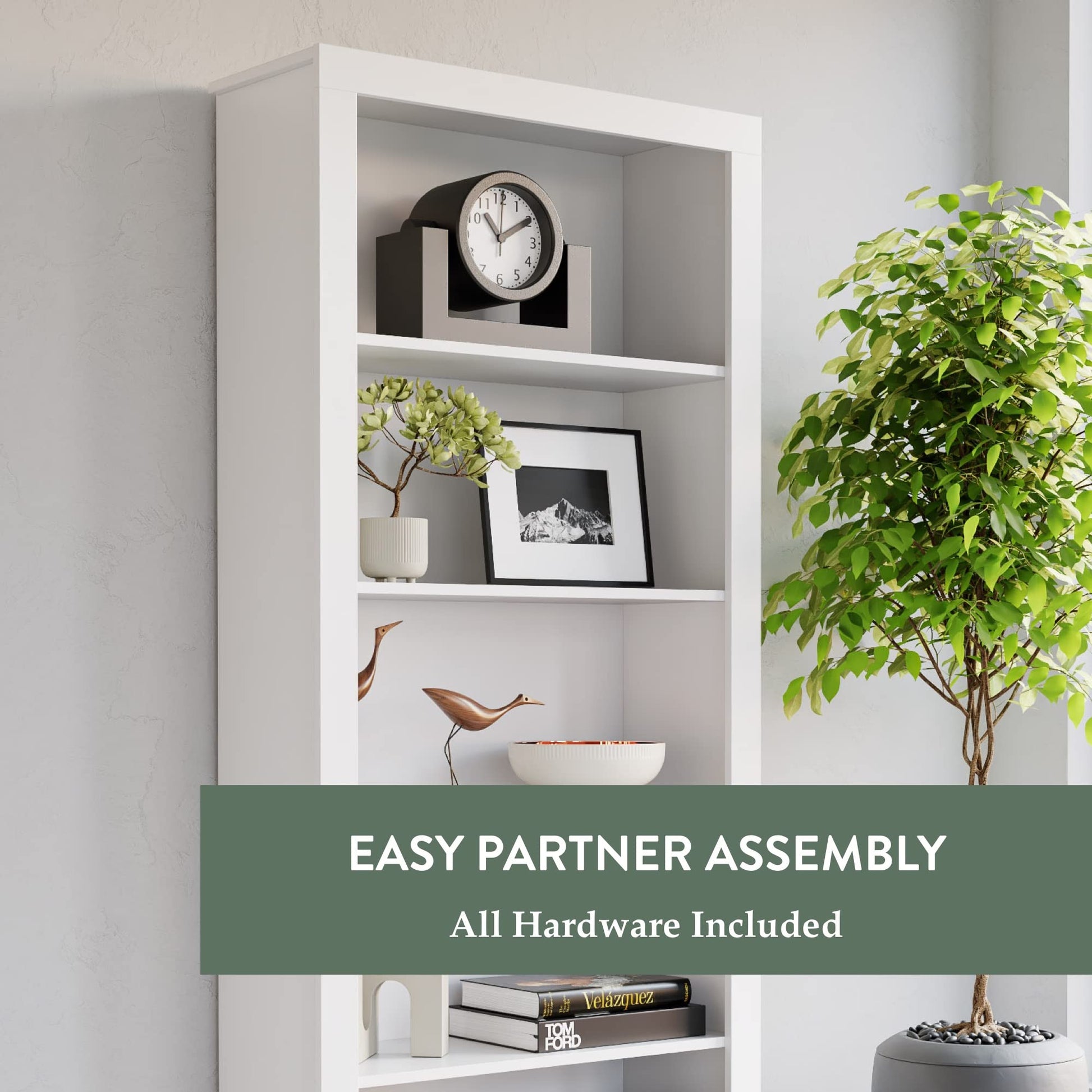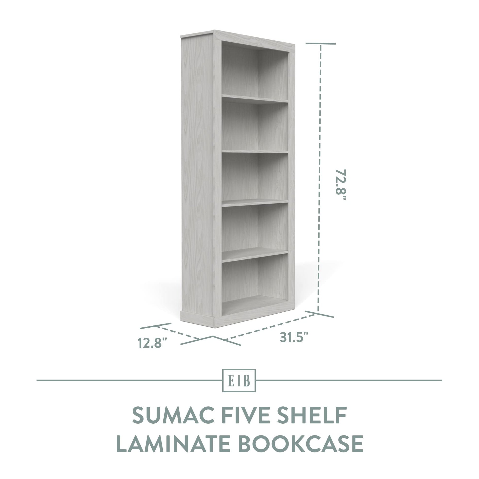 Edenbrook Sumac Bookcase, 5-Shelf Organizer for Bedroom Furniture or Home Office Furniture, White Bookshelf 12.8D x 31.5W x 72.8H in